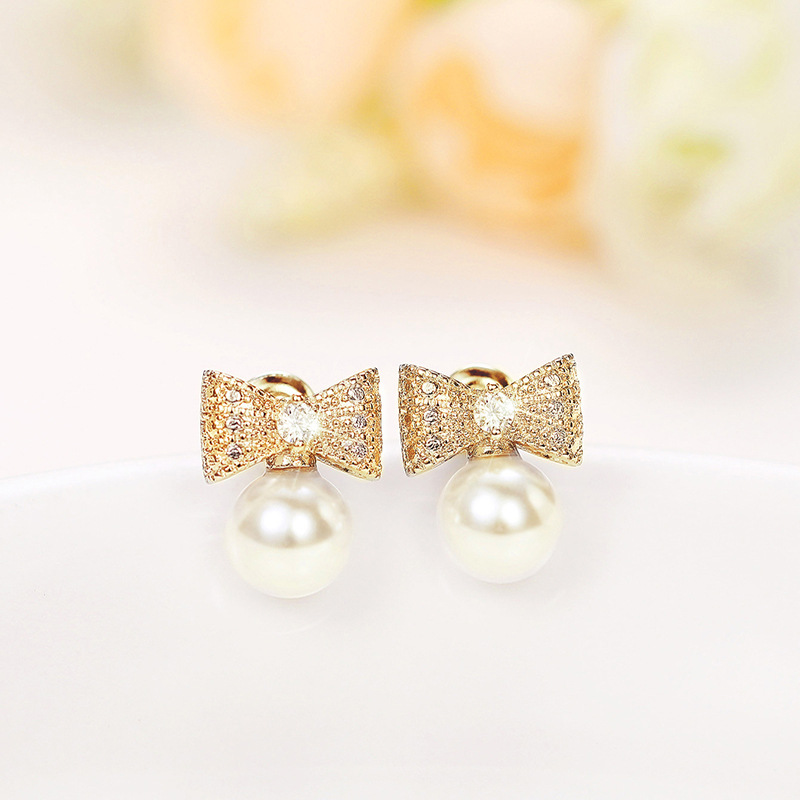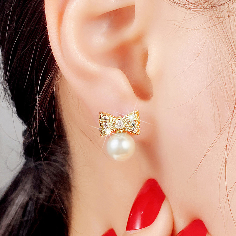 Cute star-style earrings, exaggerated and atmospheric pearl bow earrings, Korean temperament, Internet celebrity style
