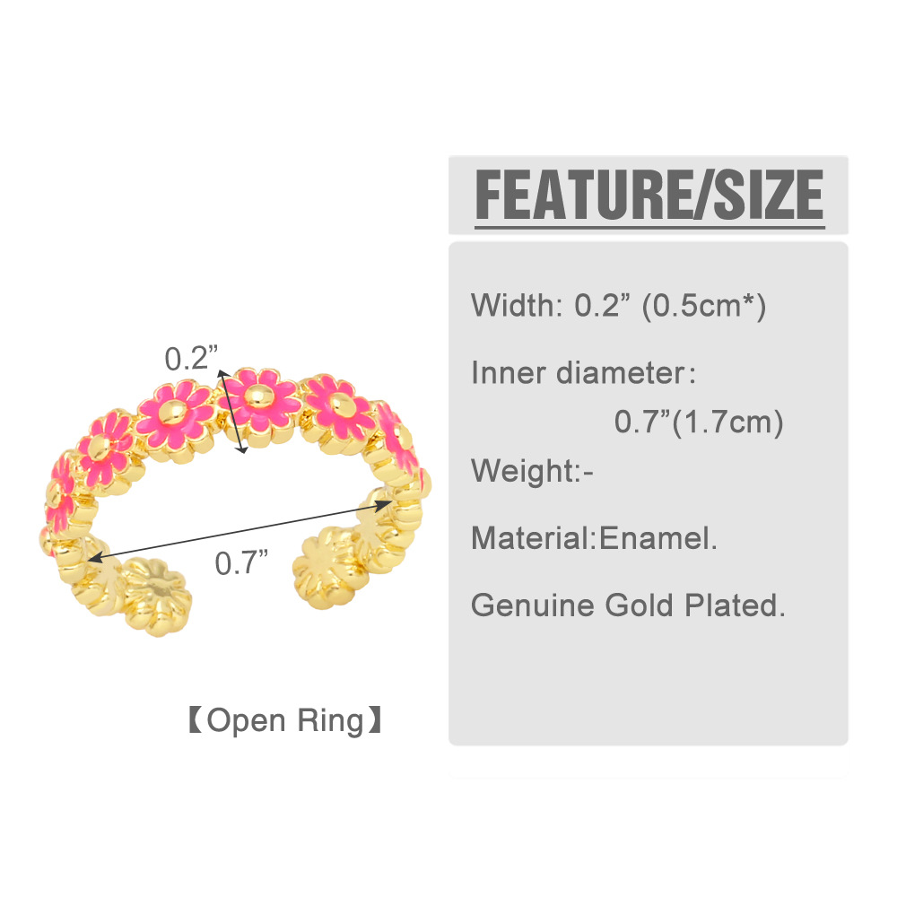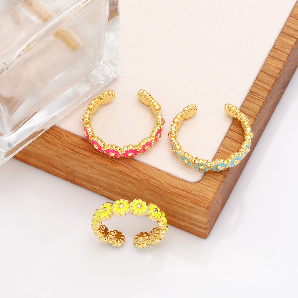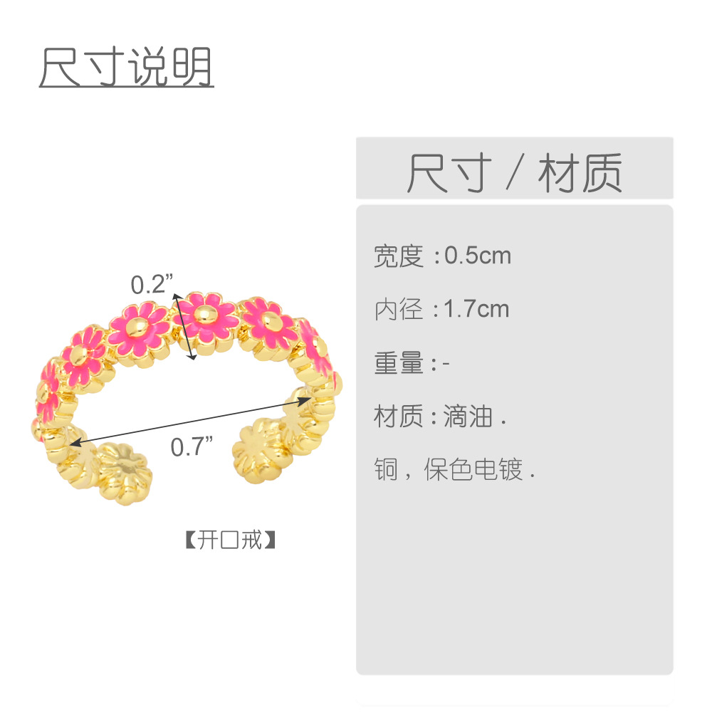 Daisy enamel ring female new niche design oil drop flower open ring jewelry rir37