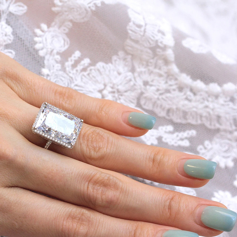 Dazzling rectangular Korean ring exaggerated luxury temperament Internet celebrity ring fashionable simple index finger ring