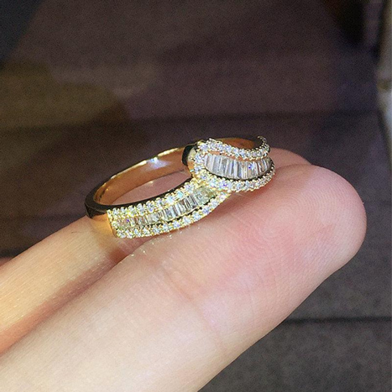 Classic four-claw imitation zircon micro-inlaid ring women's double row two-color twist arm ring engagement wedding ring women
