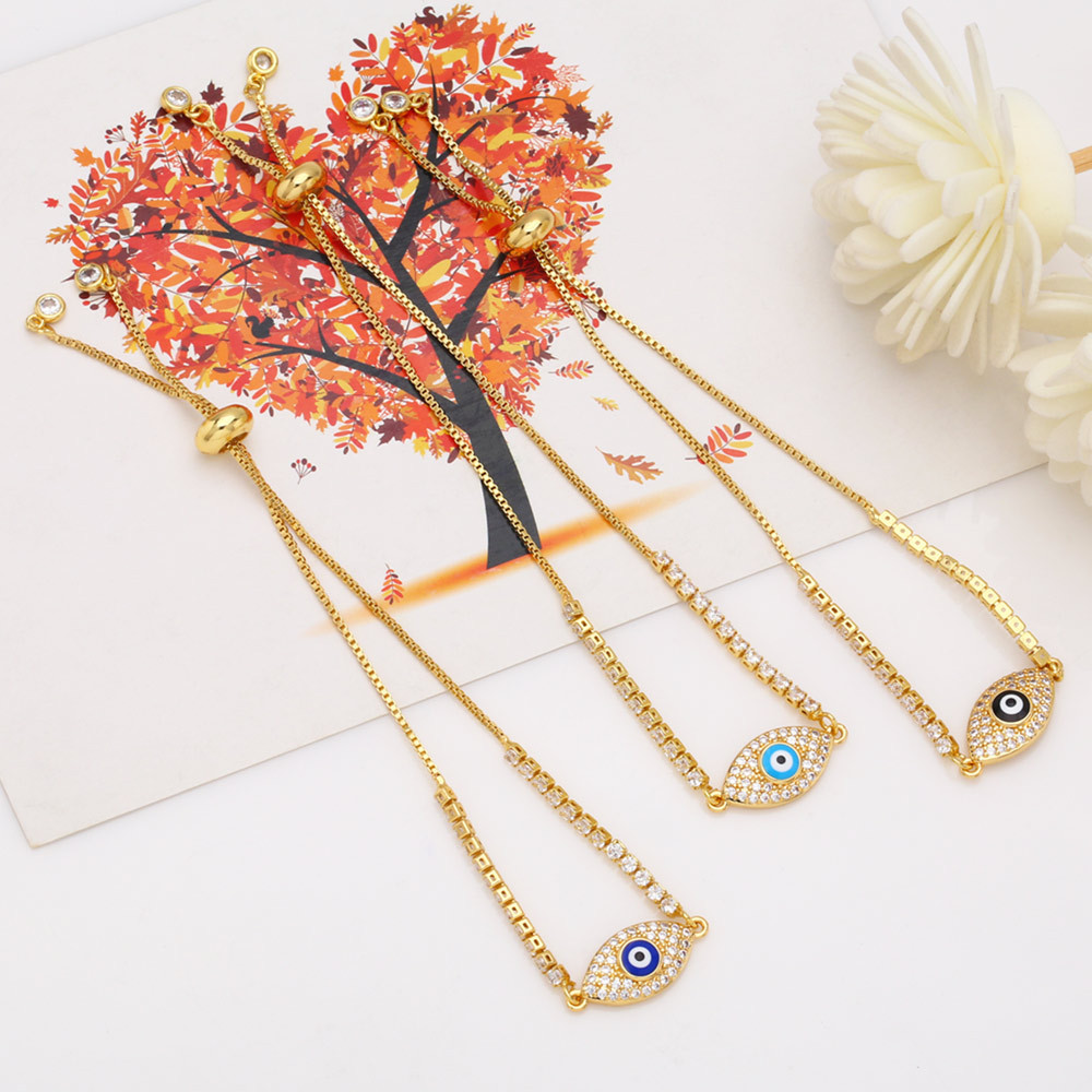 Devil's Eye Bracelet Women's European and American Simple Adjustable Pull-out Micro-inlaid Zircon Oil Drop Eye Bracelet brg83
