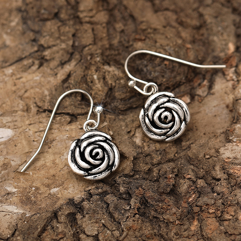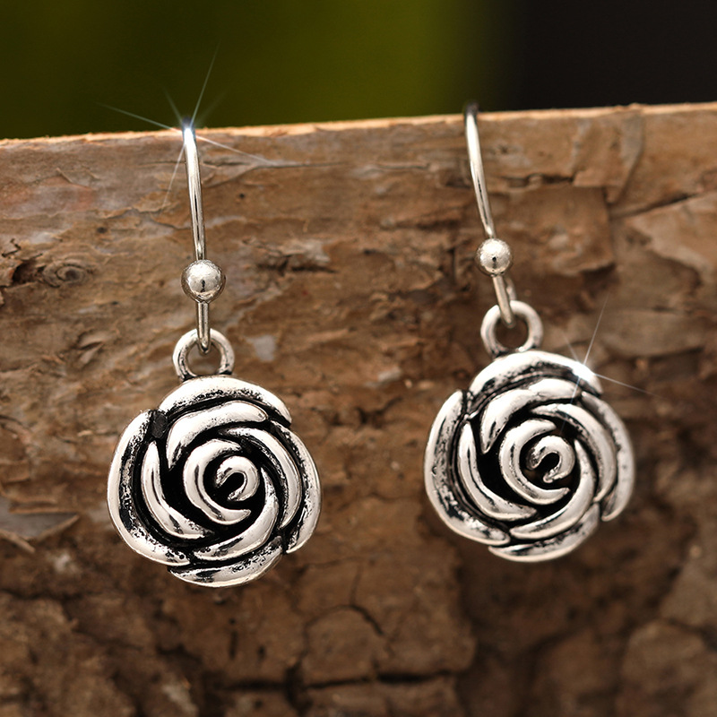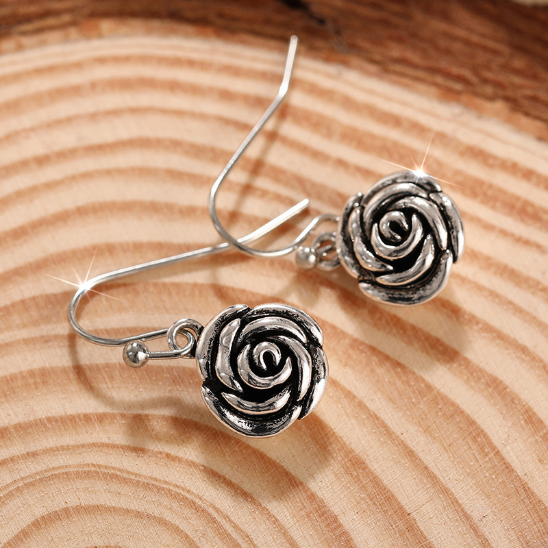 Direct selling forest retro earrings for women rose antique silver jewelry small fresh elegant lady style accessories