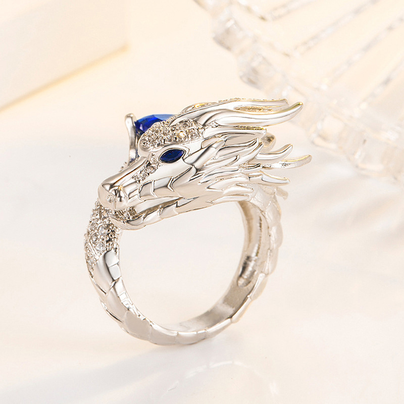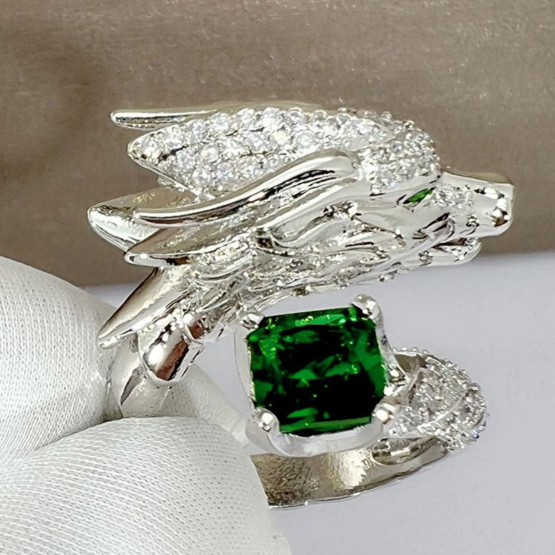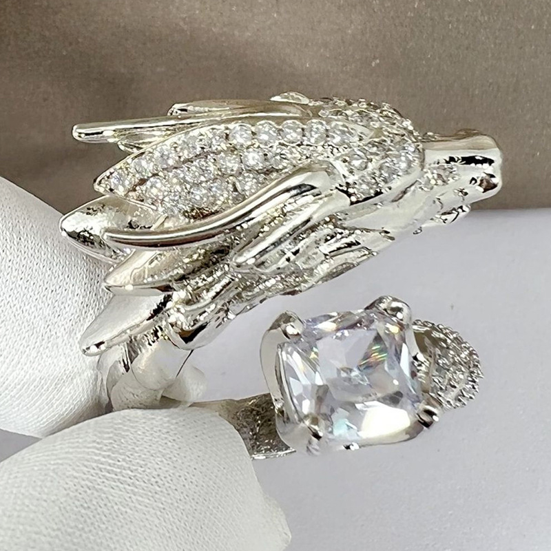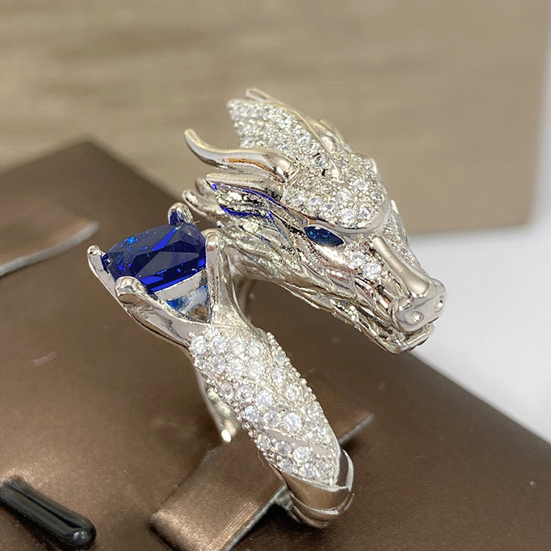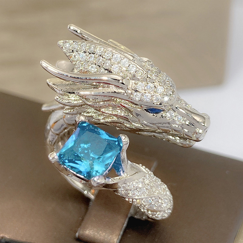 Direct selling heavy-duty open ring Oriental dragon domineering shape ring shining square diamond inlaid jewelry