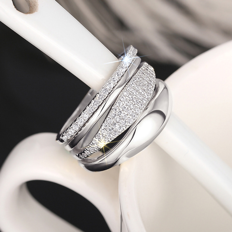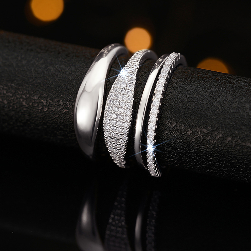 European and American luxury design ring fashionable temperament horse eye zircon ring multi-layer hollow design index finger ring