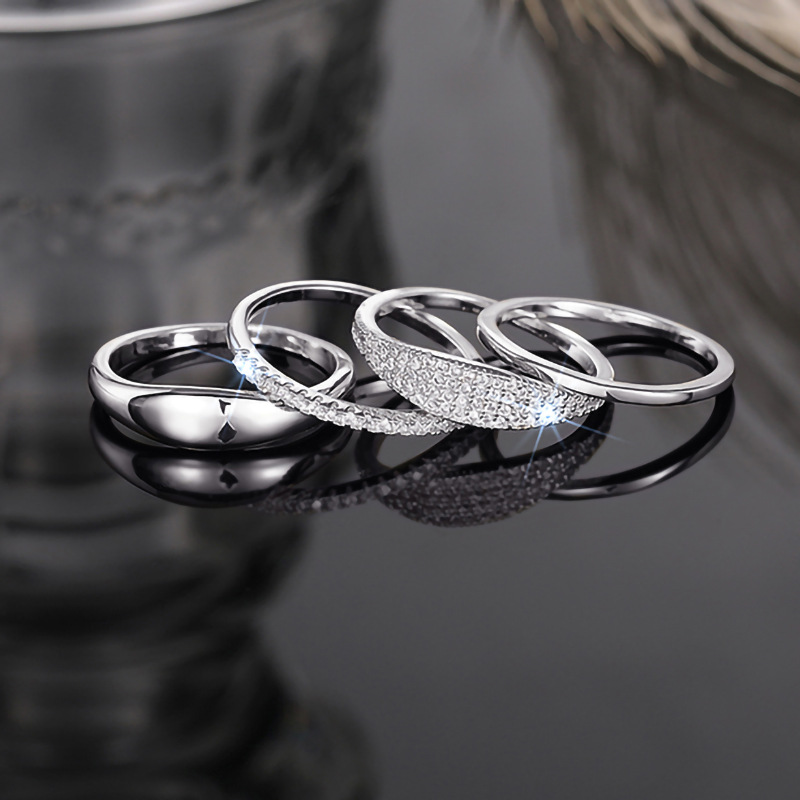 Direct selling simple stacking ring four-piece set inlaid with zircon classic jewelry engagement wedding ring