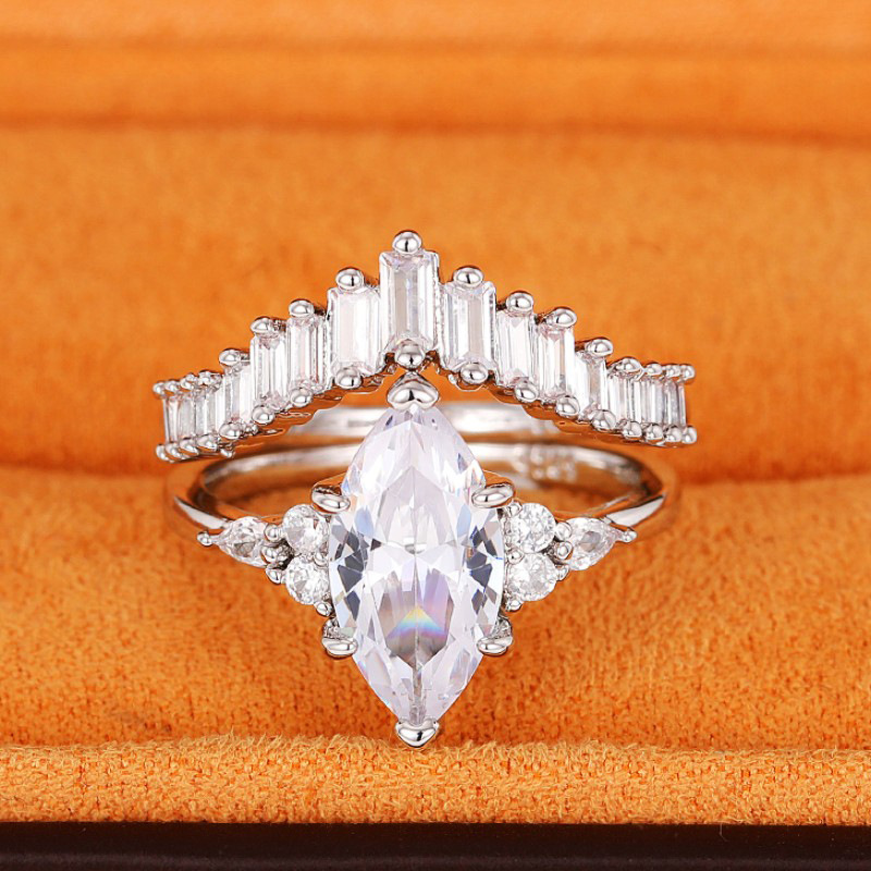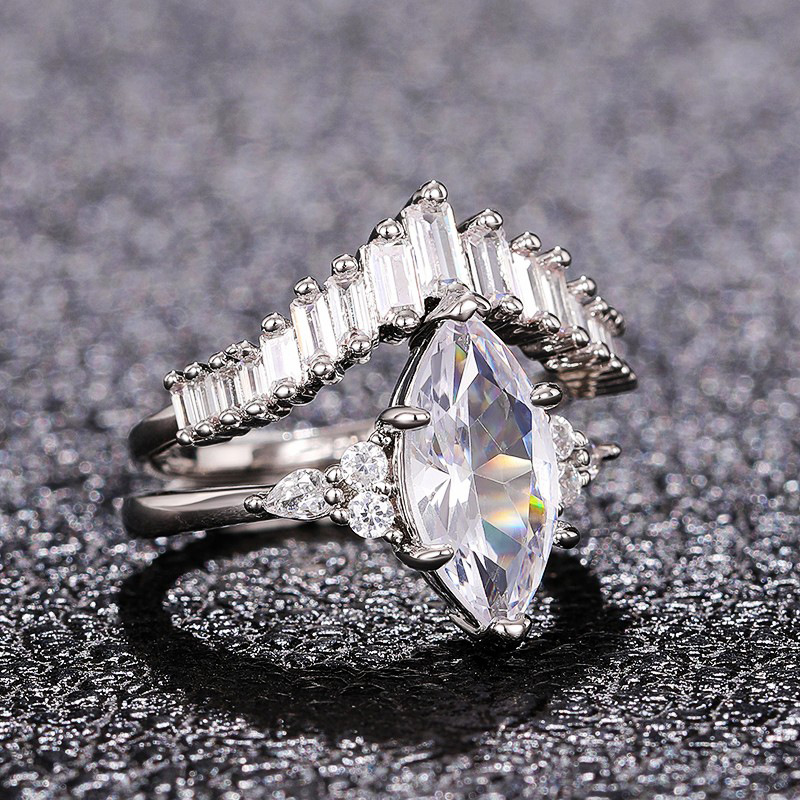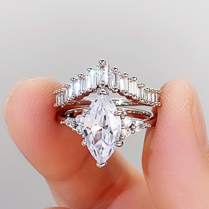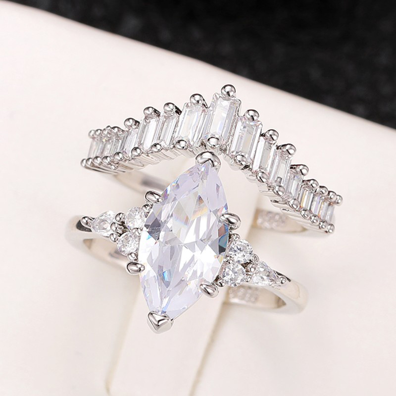 Double-layer crown two-in-one simulated diamond inlaid combination ring V-shaped horse eye zircon ring female ring