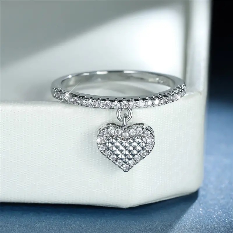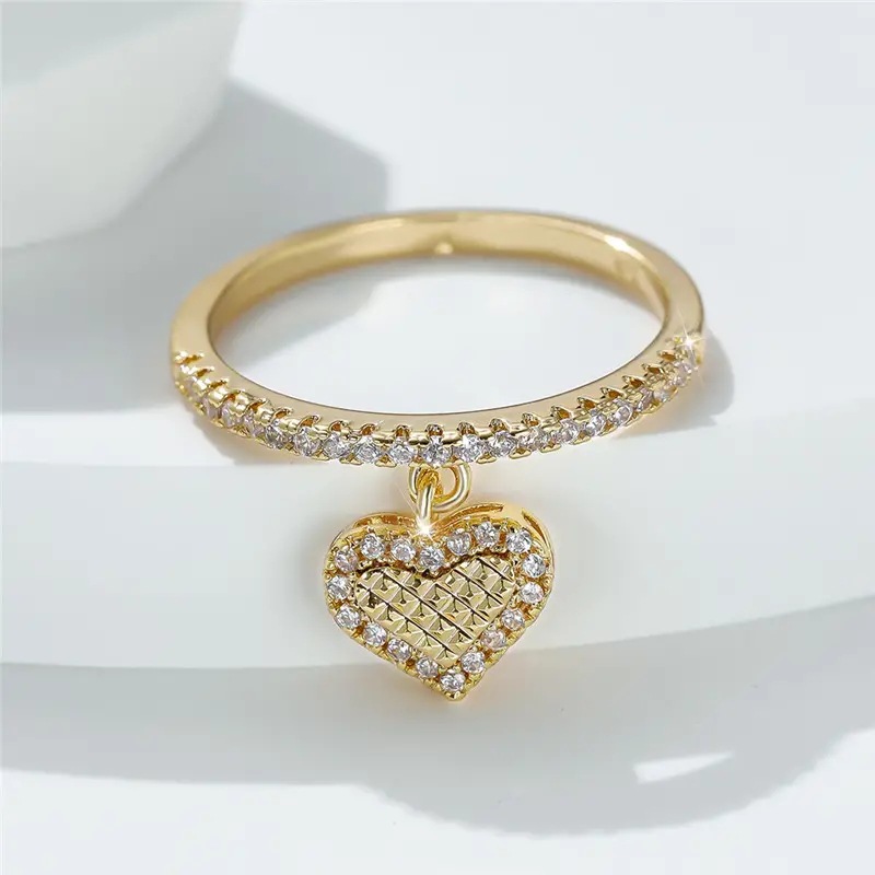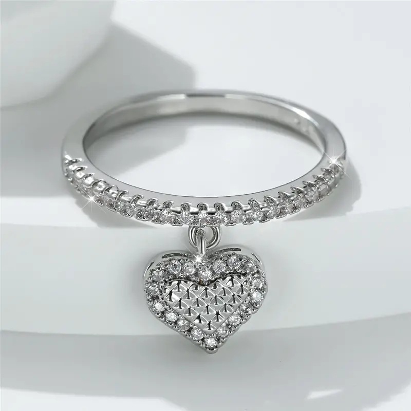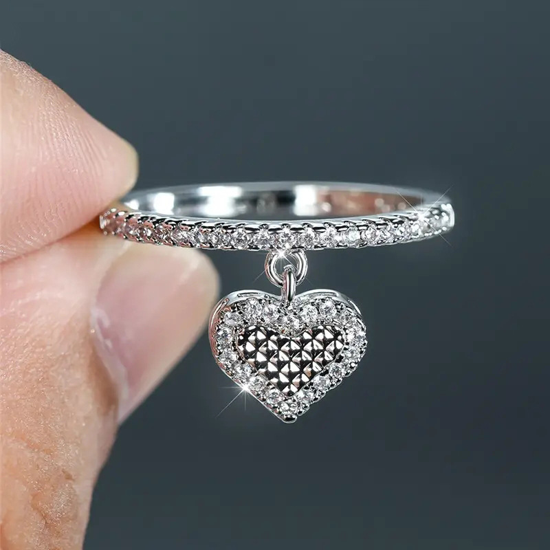 Dreamy love pendant ring for women, exquisite micro-inlaid zircon single ring, heart-shaped peach heart fashion style