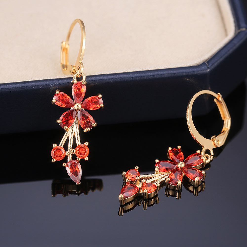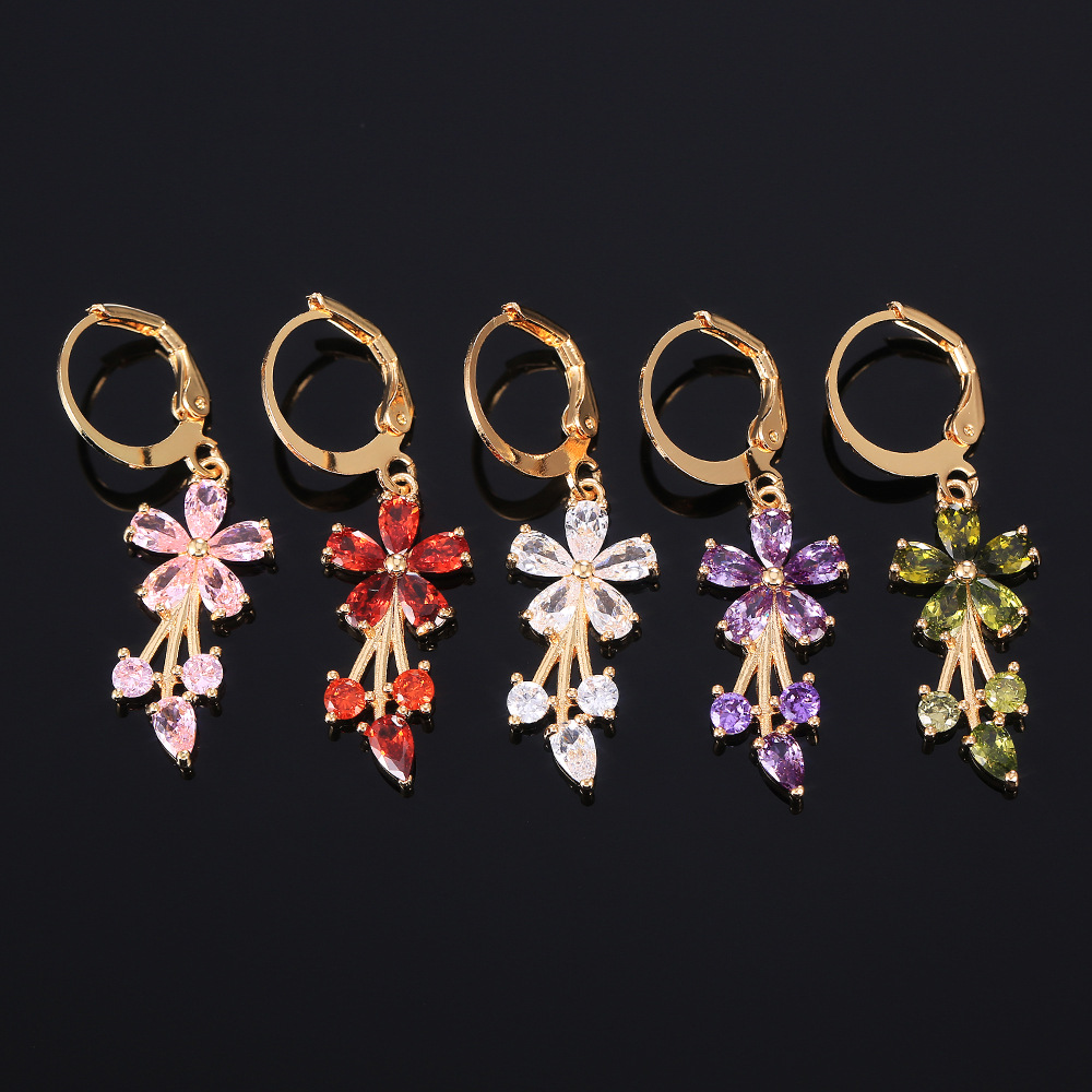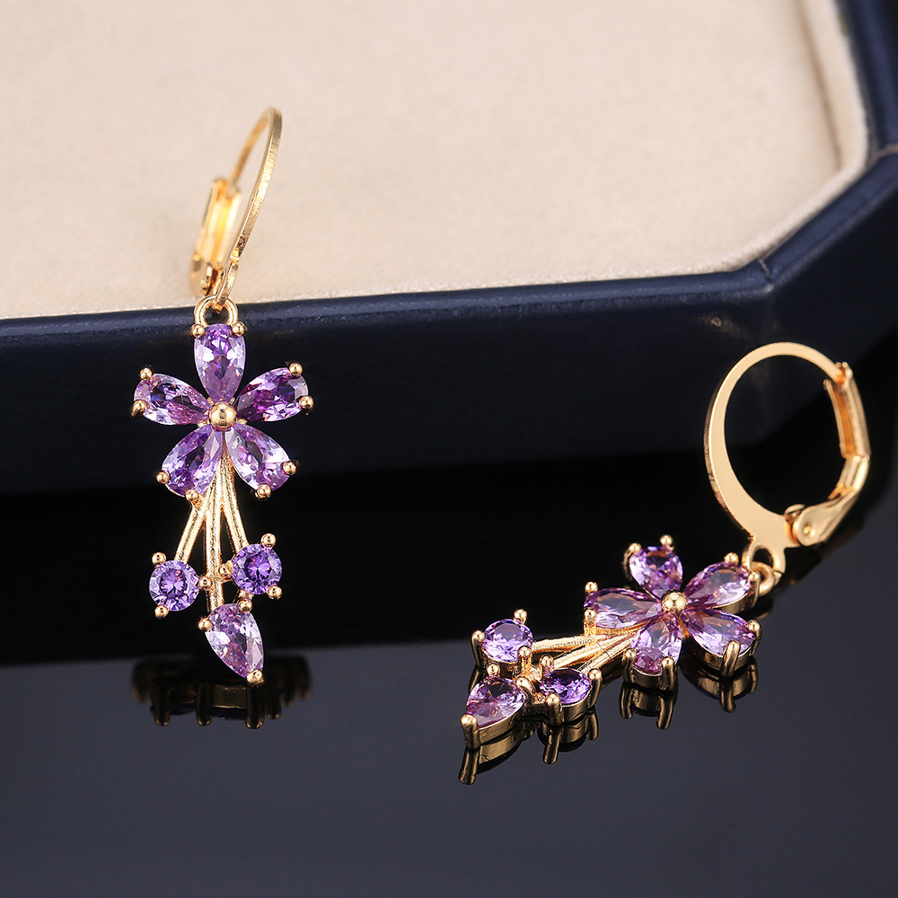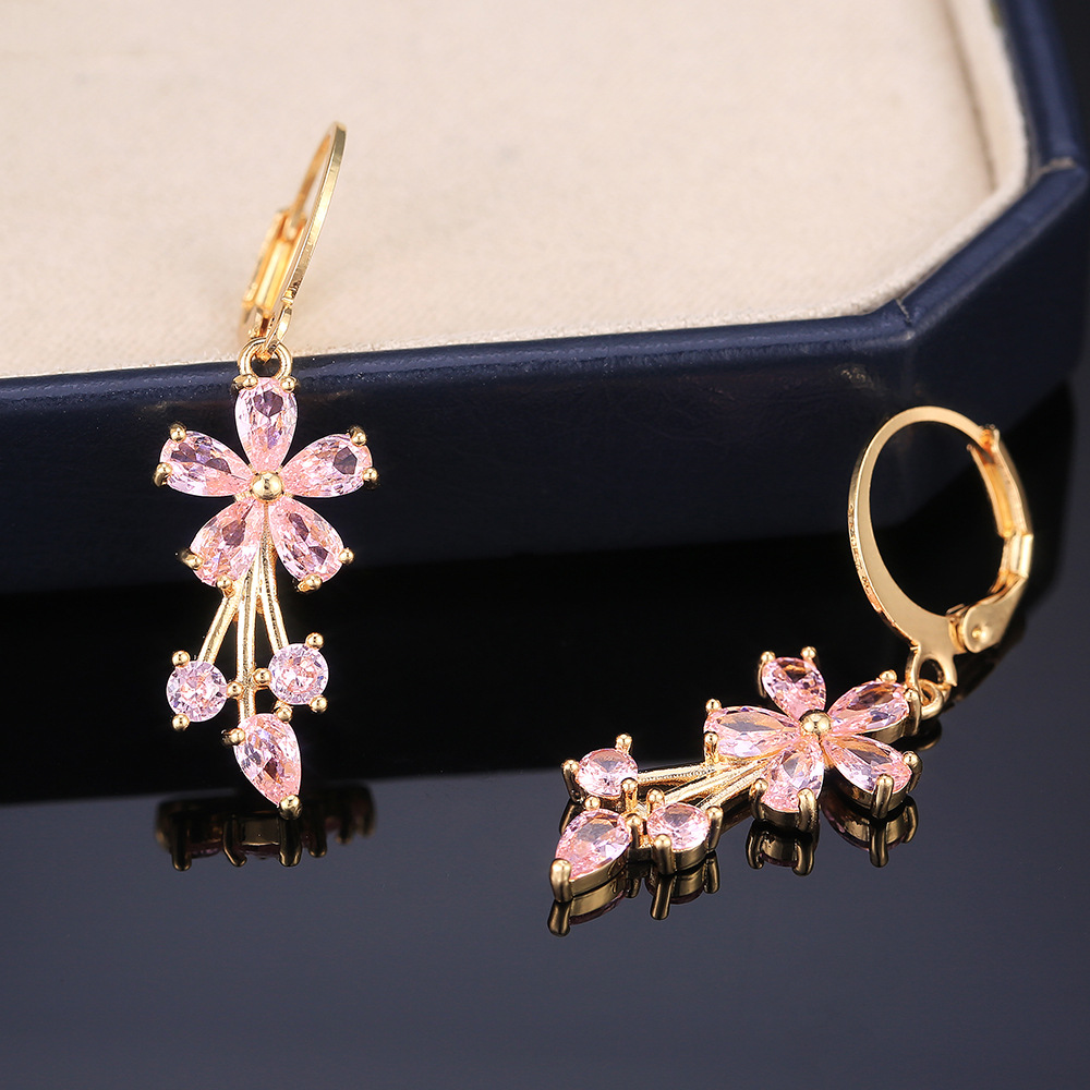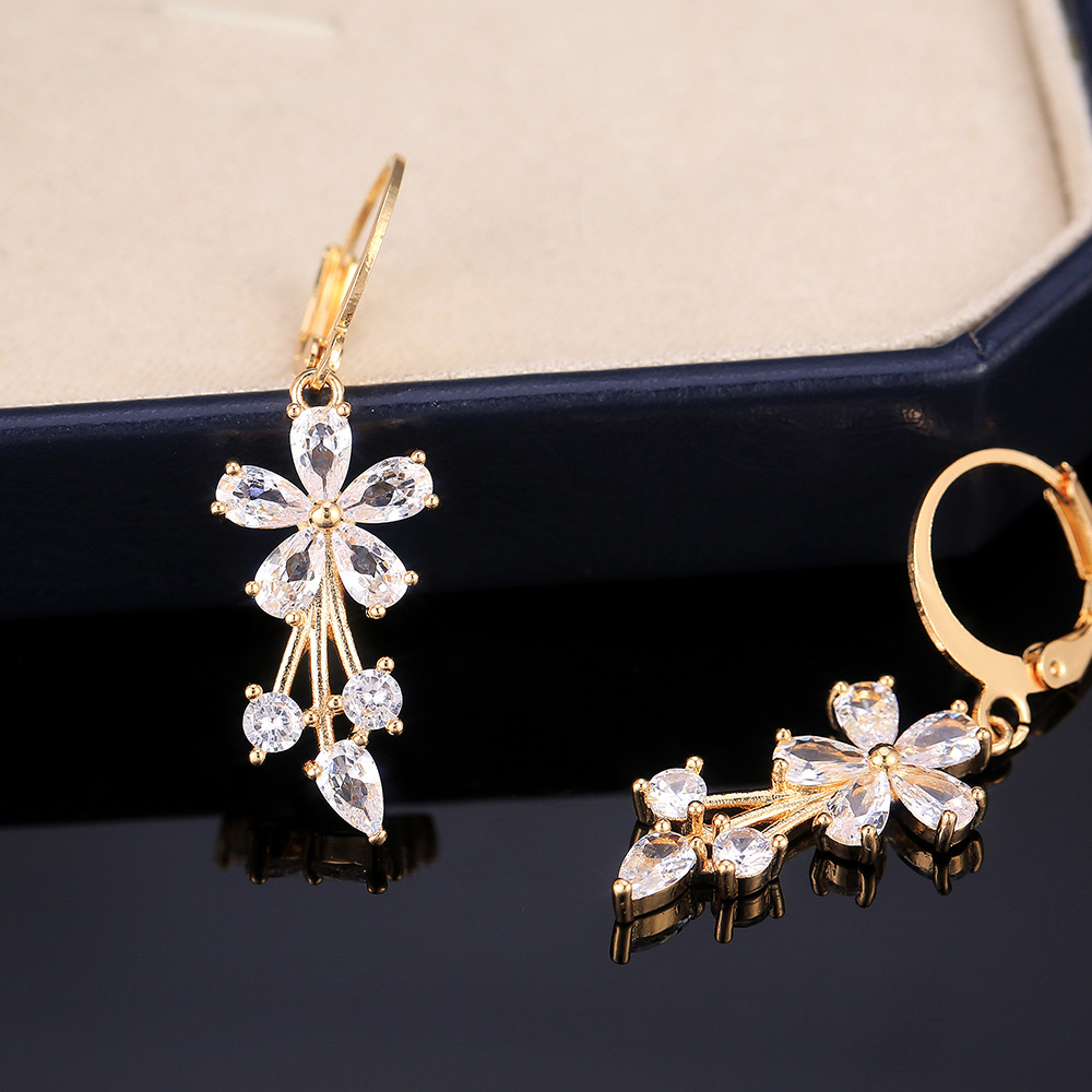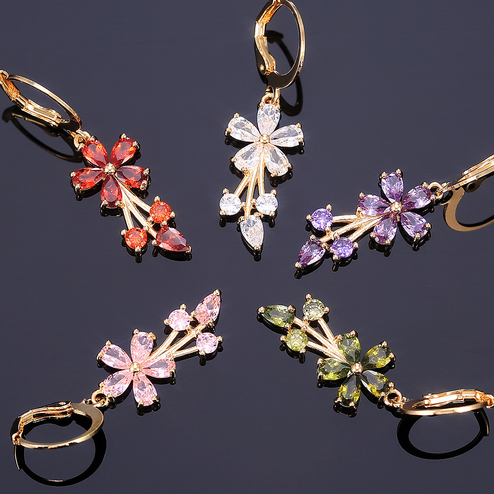 E-commerce European and American fashion OL women's floral earrings copper inlaid zircon electroplated earrings wholesale