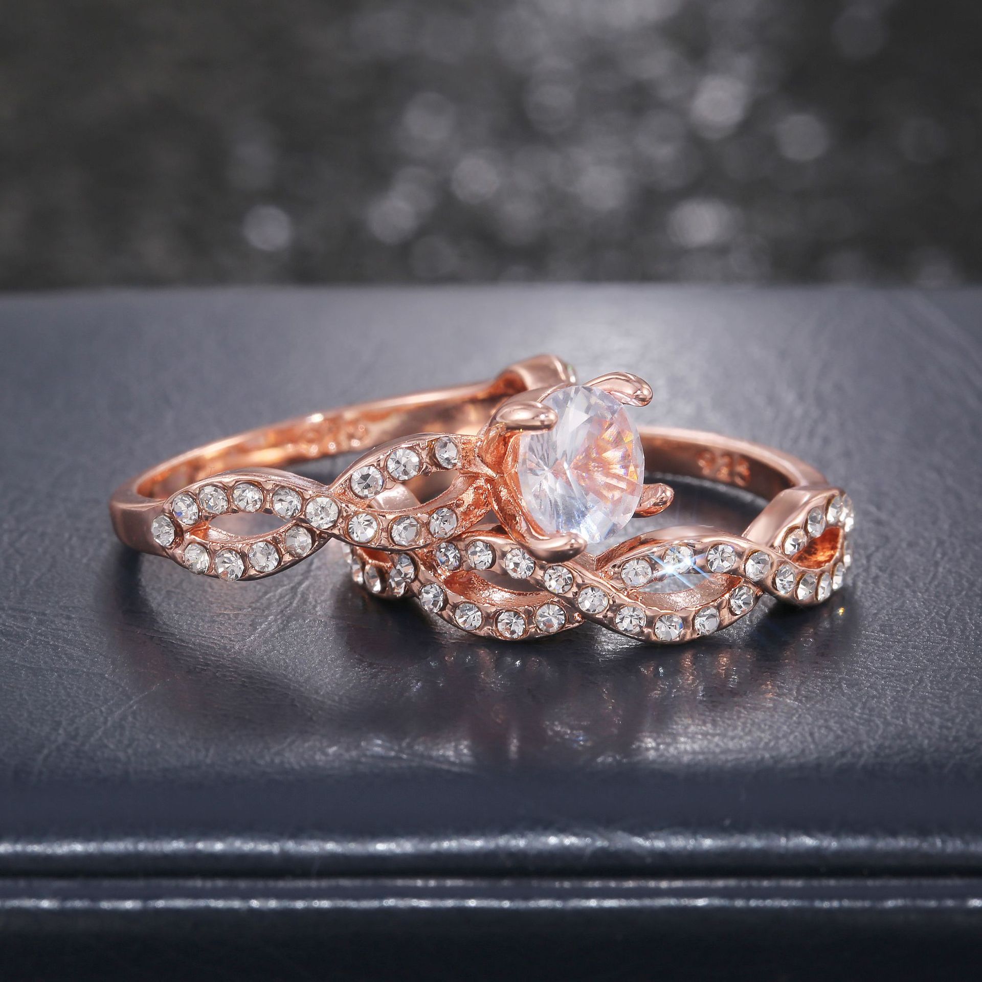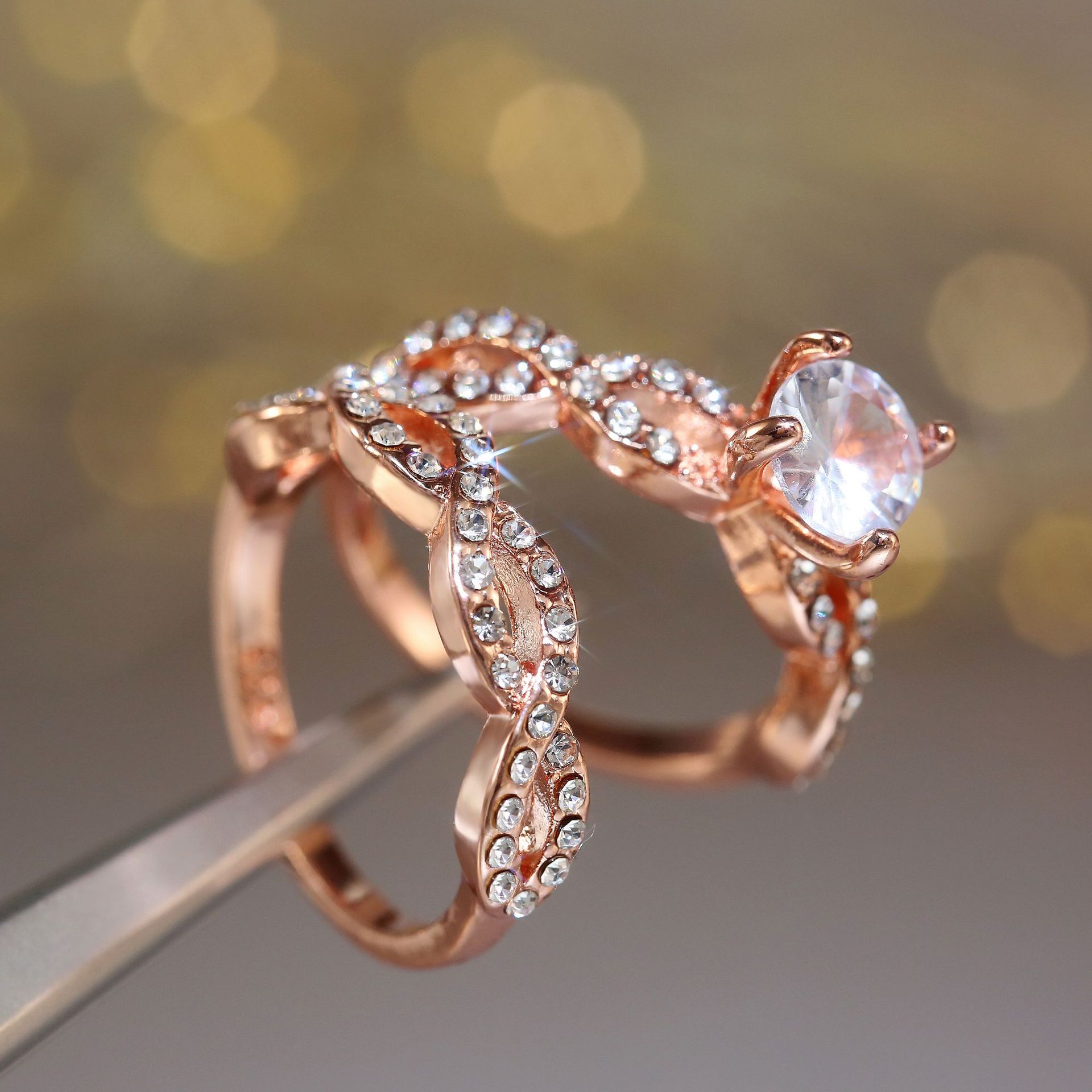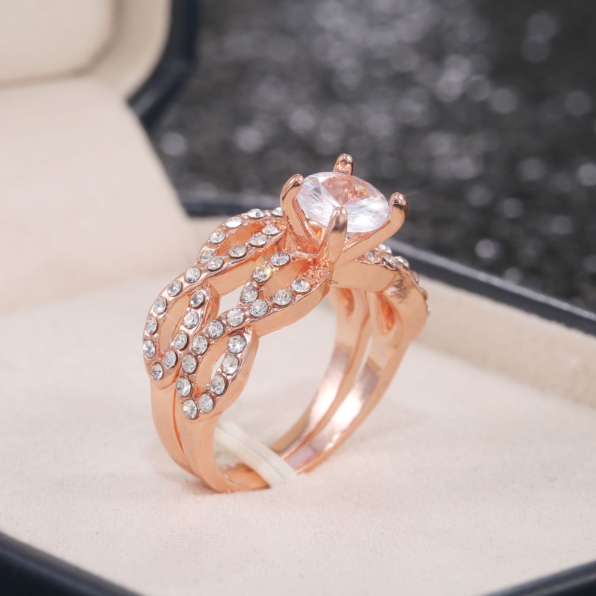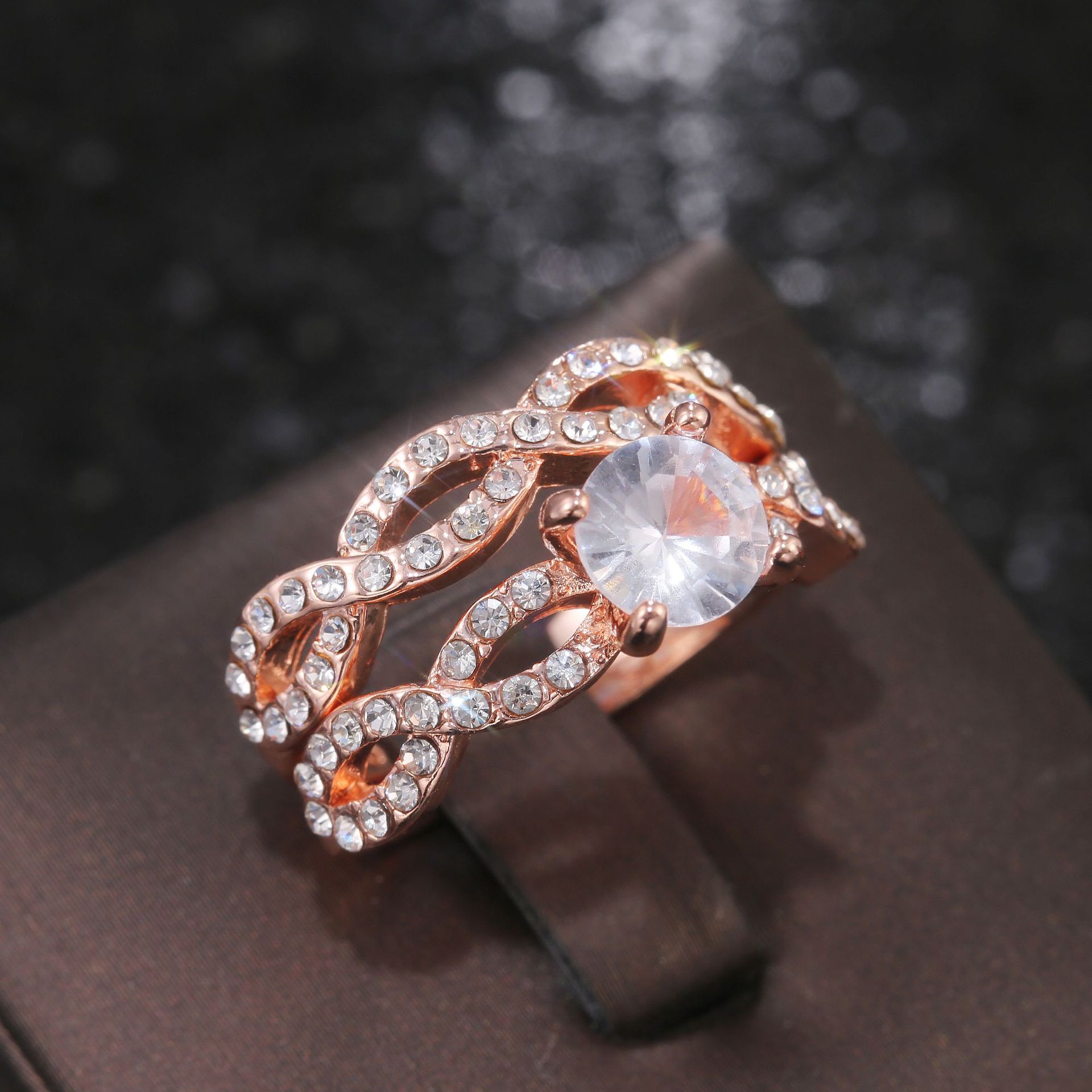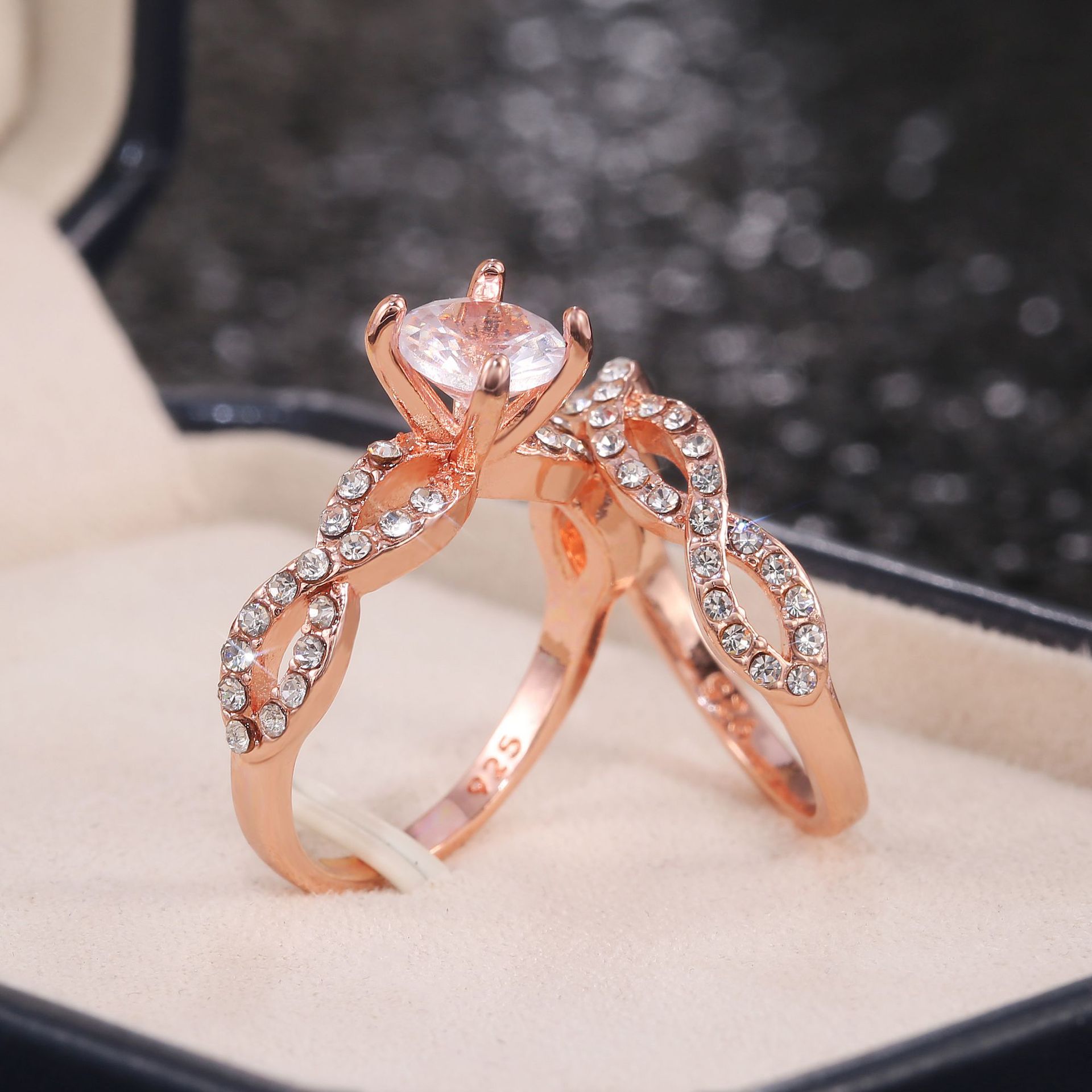 E-commerce exclusive jewelry new women's zircon rose gold ring fashionable luxury couple ring