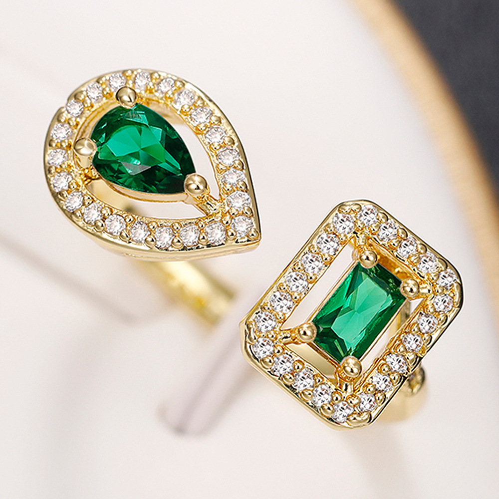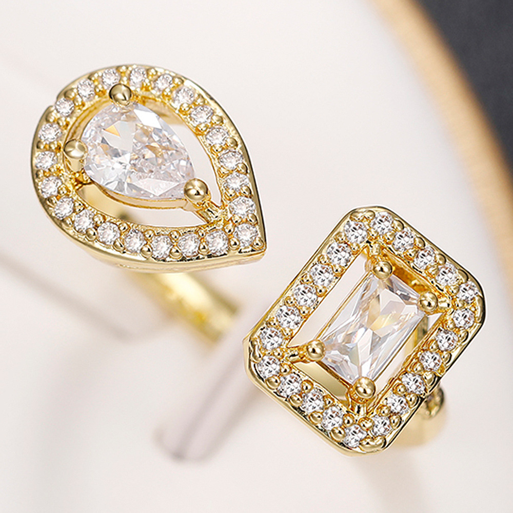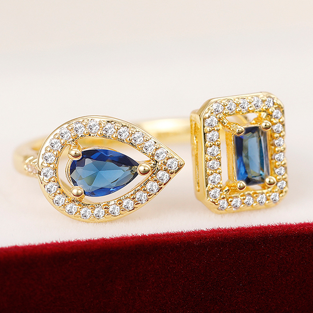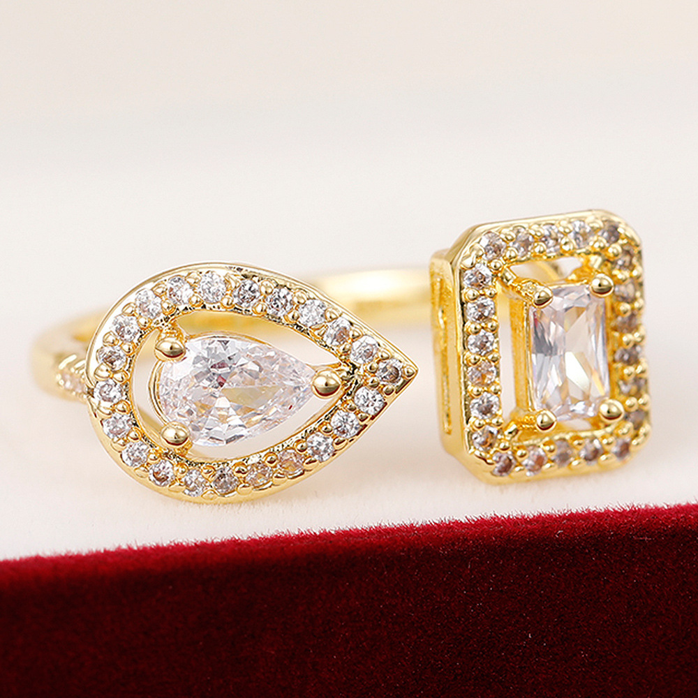 E-commerce export jewelry exquisite geometric teardrop square zircon open ring light luxury niche ring