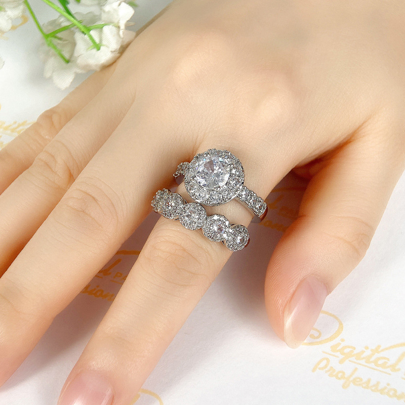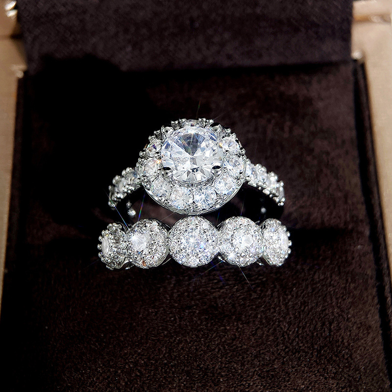 E-commerce fashion engagement ring European and American electroplated micro-inlaid zircon ring super shiny women's ring