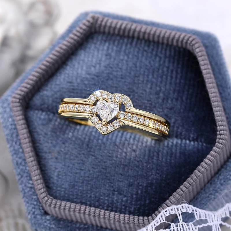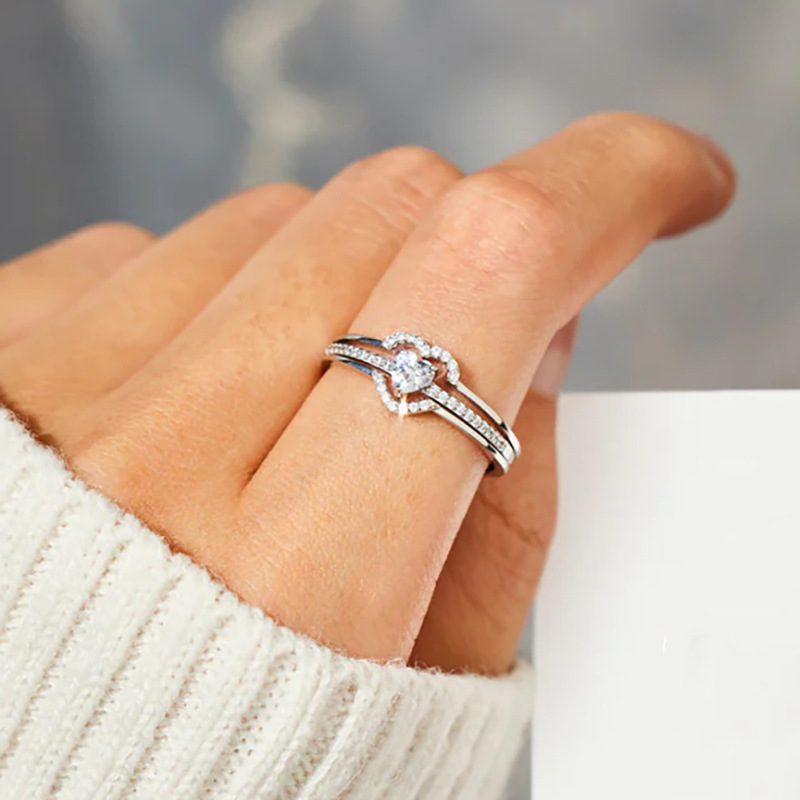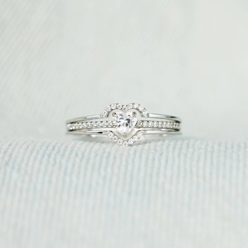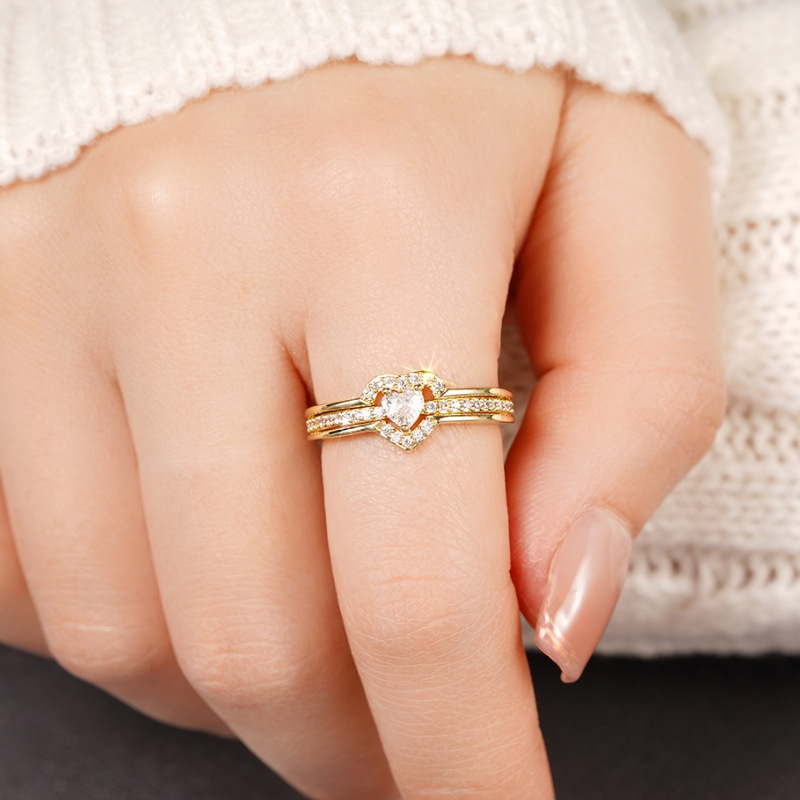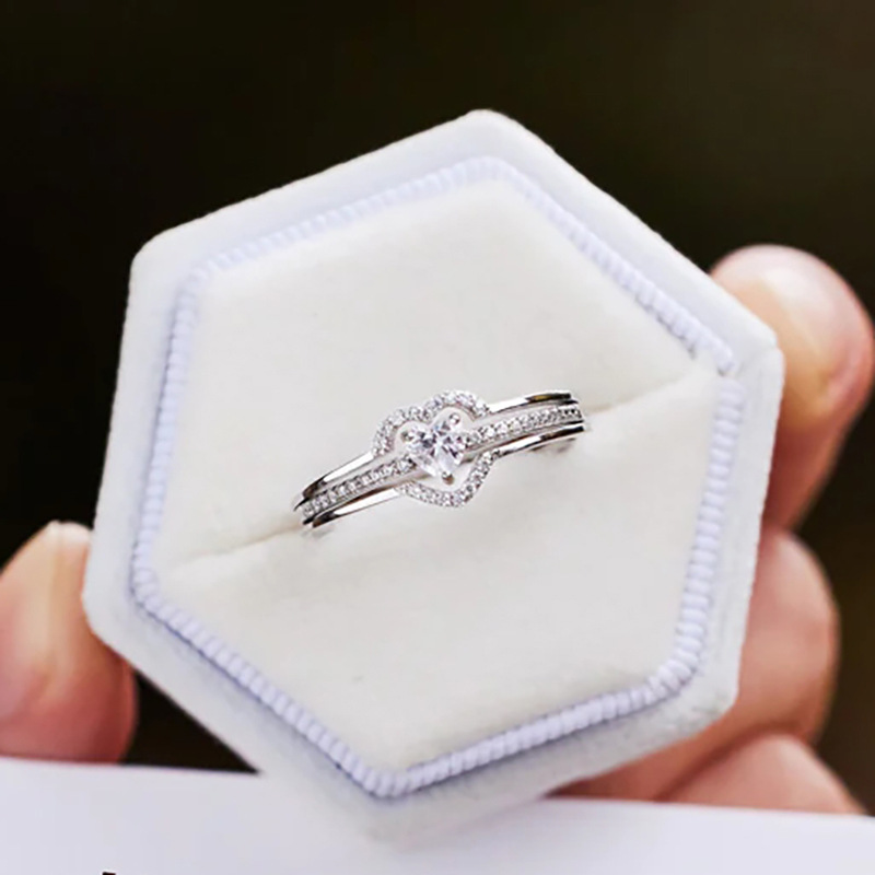 E-commerce gentle double peach heart design ring for women inlaid with zircon sweet and exquisite ring everyday jewelry