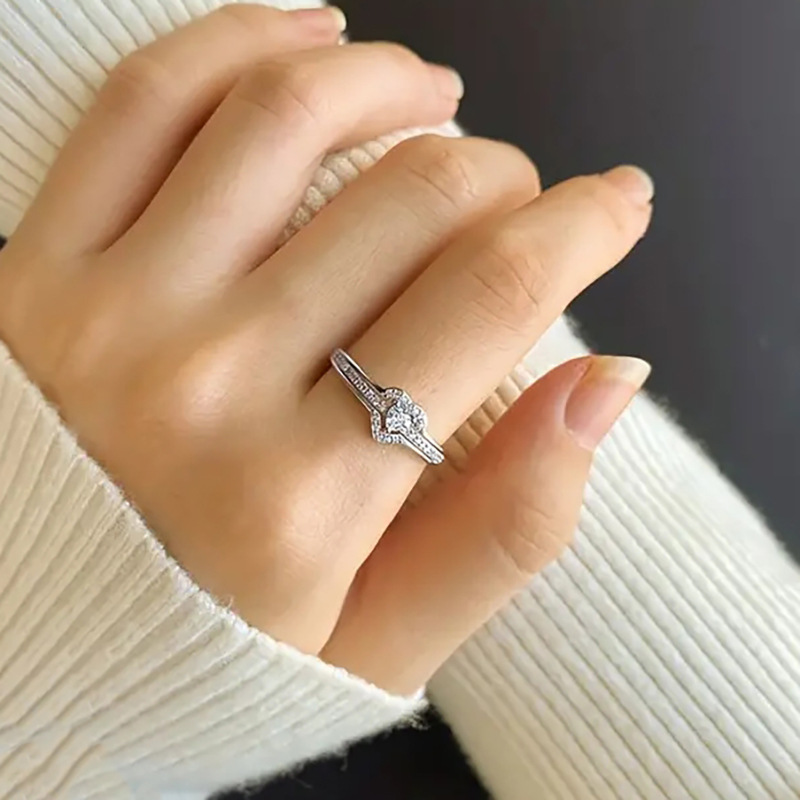 Micro-inlaid celebrity style classic all-match popular ring six-claw zircon wedding ring European and American style light luxury ring