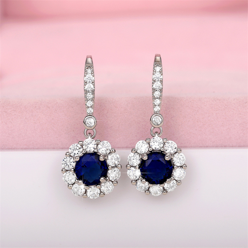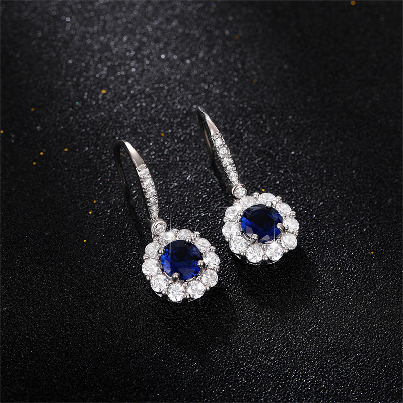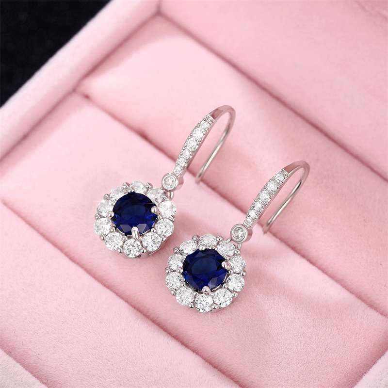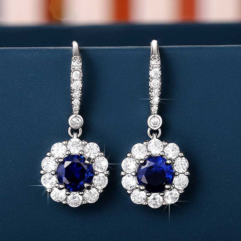 E-commerce live streaming celebrity style exquisite sapphire zircon long earrings anniversary gift