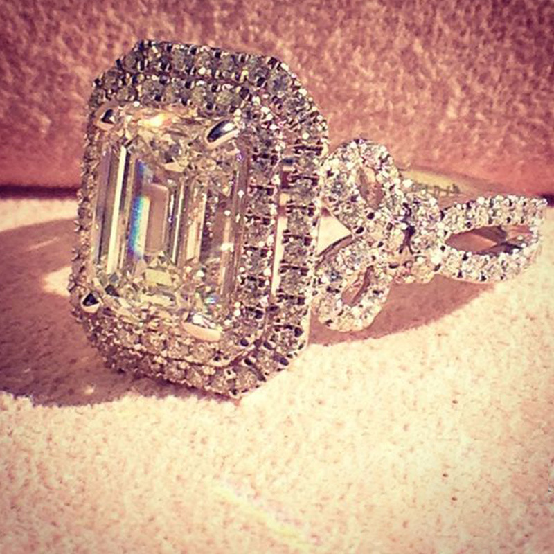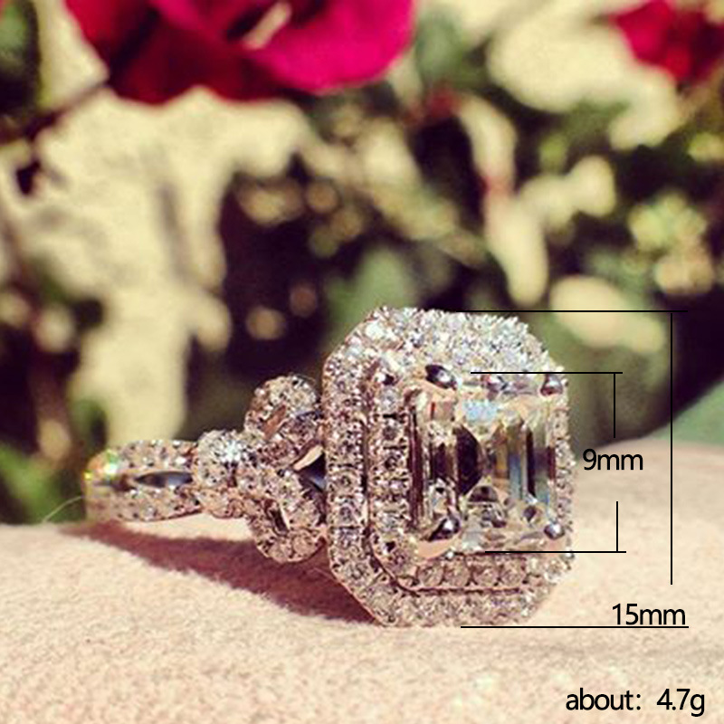 Hot selling new princess square ring European and American hot style inlaid zircon women's jewelry engagement proposal ring