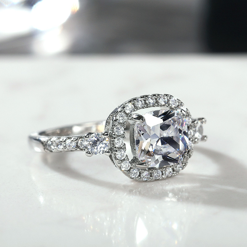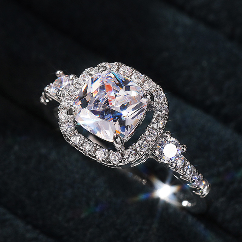 E-commerce new hand jewelry fashion OL hollow square zircon ring simple engagement platinum ring