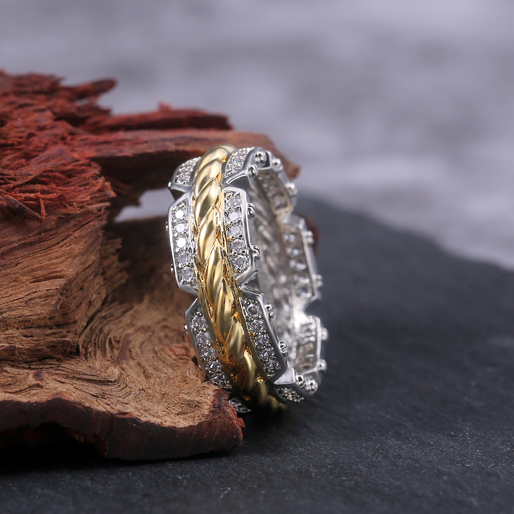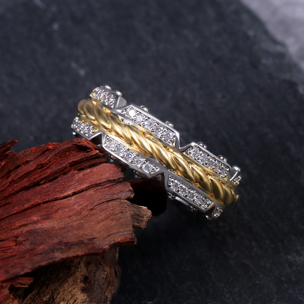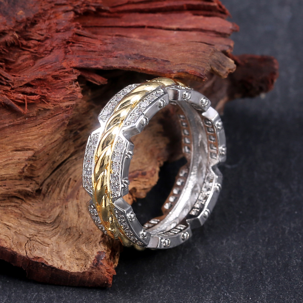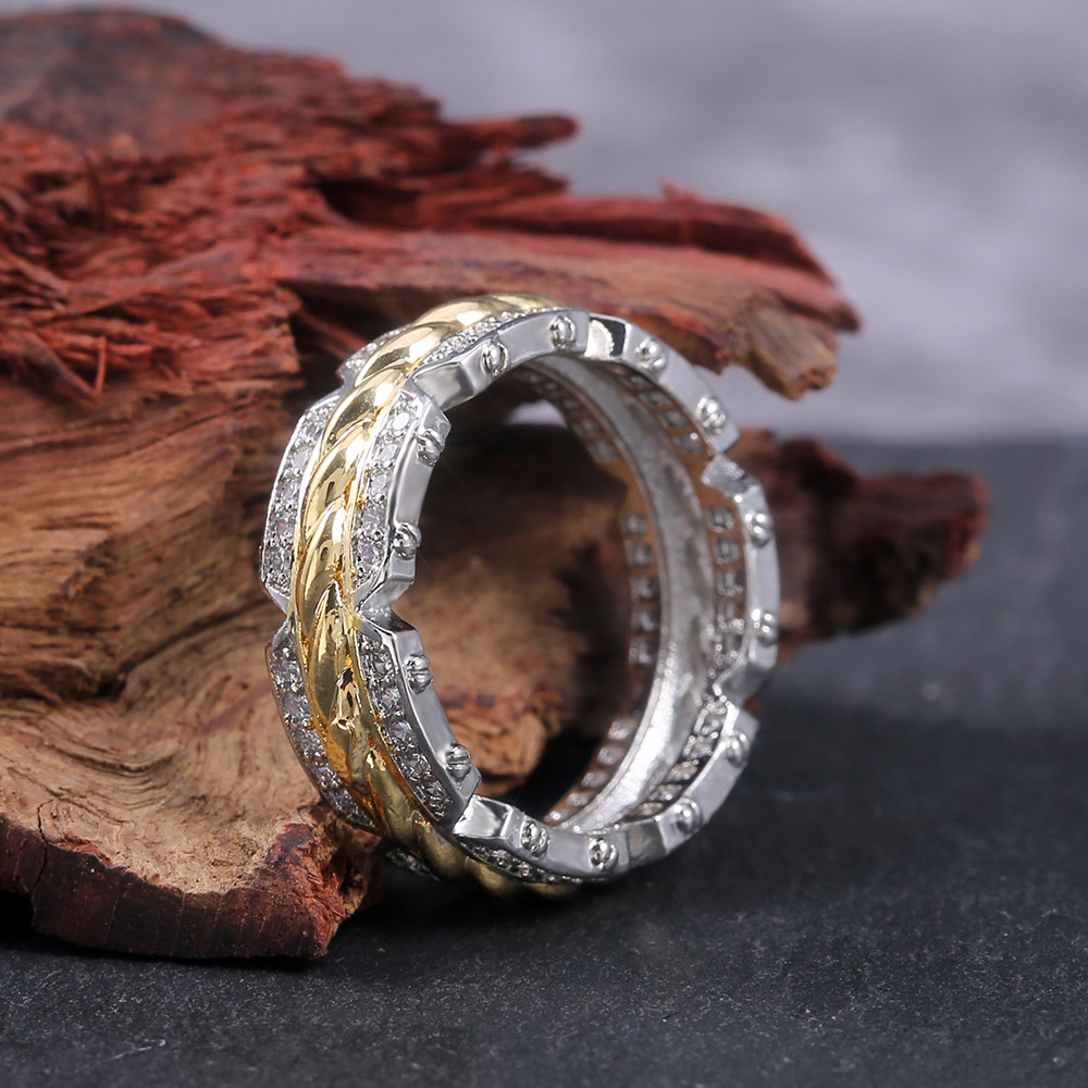 E-commerce supply copper-plated two-tone zircon ring European and American popular men's and women's engagement jewelry