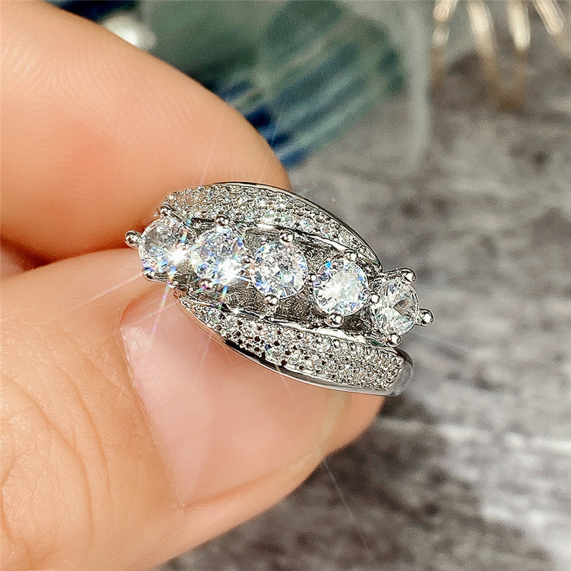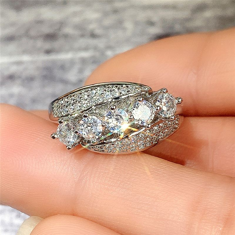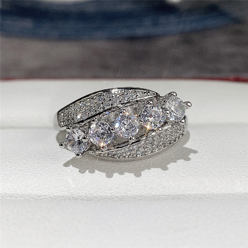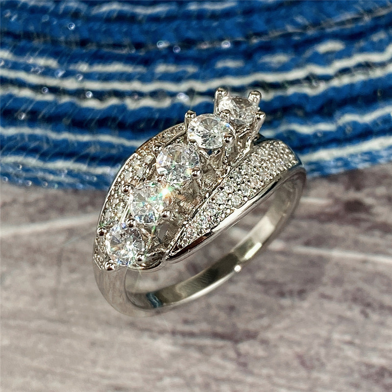 Micro-inlaid celebrity style classic all-match popular ring six-claw zircon wedding ring European and American style light luxury ring