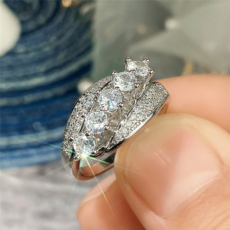 New zircon ring hollow cross four claws fashion design proposal wedding ring birthday gift ring