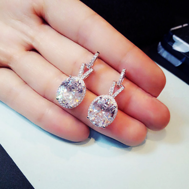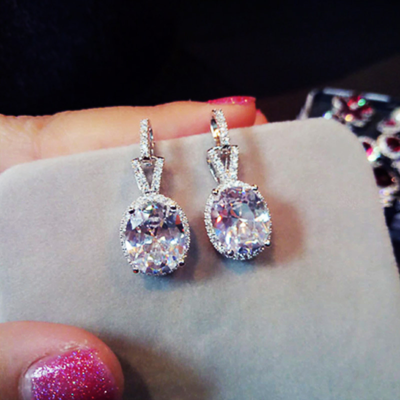 E-commerce supply oval zircon diamond earrings popular in Europe and America for women's engagement earrings