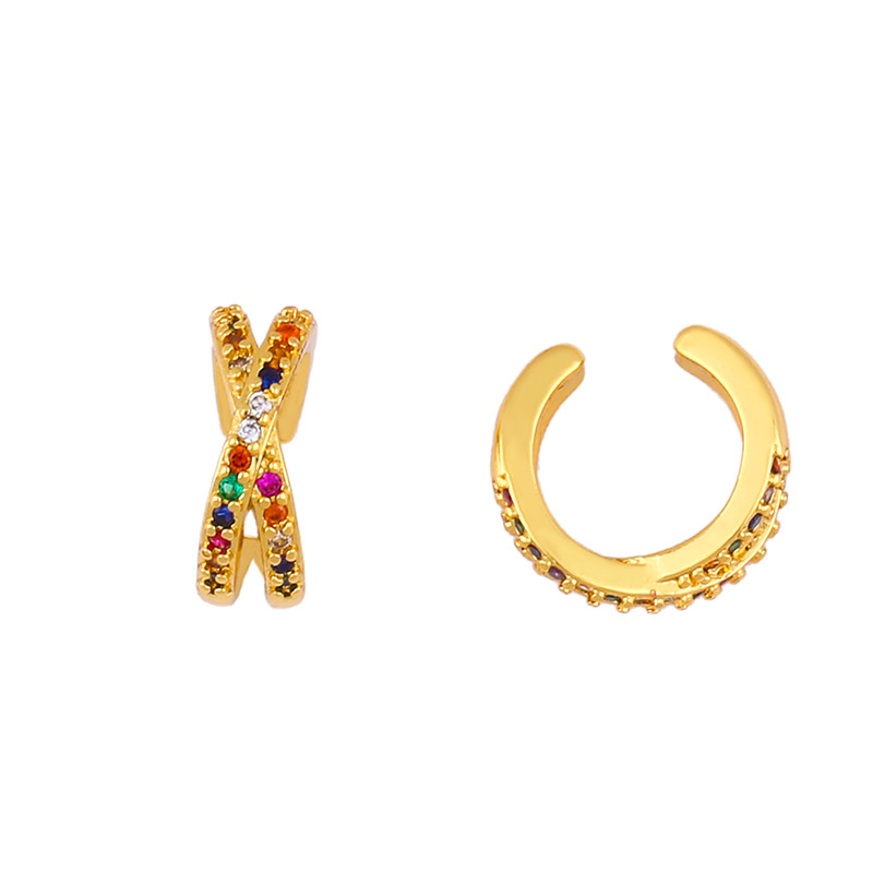 European and American simple fashion color zircon earrings niche design ear clip 18k gold plated earrings eru52