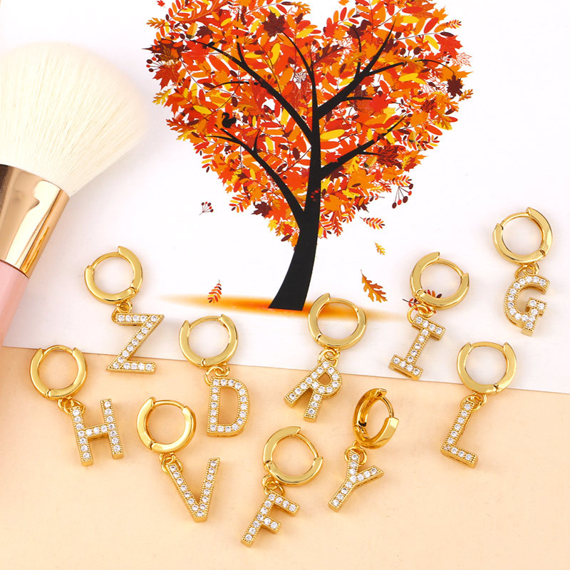 earrings26 letter earrings European and American personality micro inlaid colored zircon letter earrings earrings female eru27