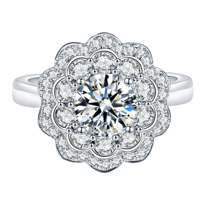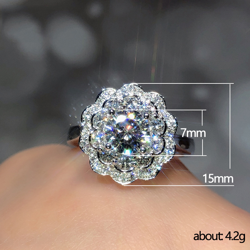 Eight Hearts and Eight Arrows Double Flower Imitation Moissanite Zircon Ring Live Streaming Internet Celebrity Supply Chain Jewelry Source