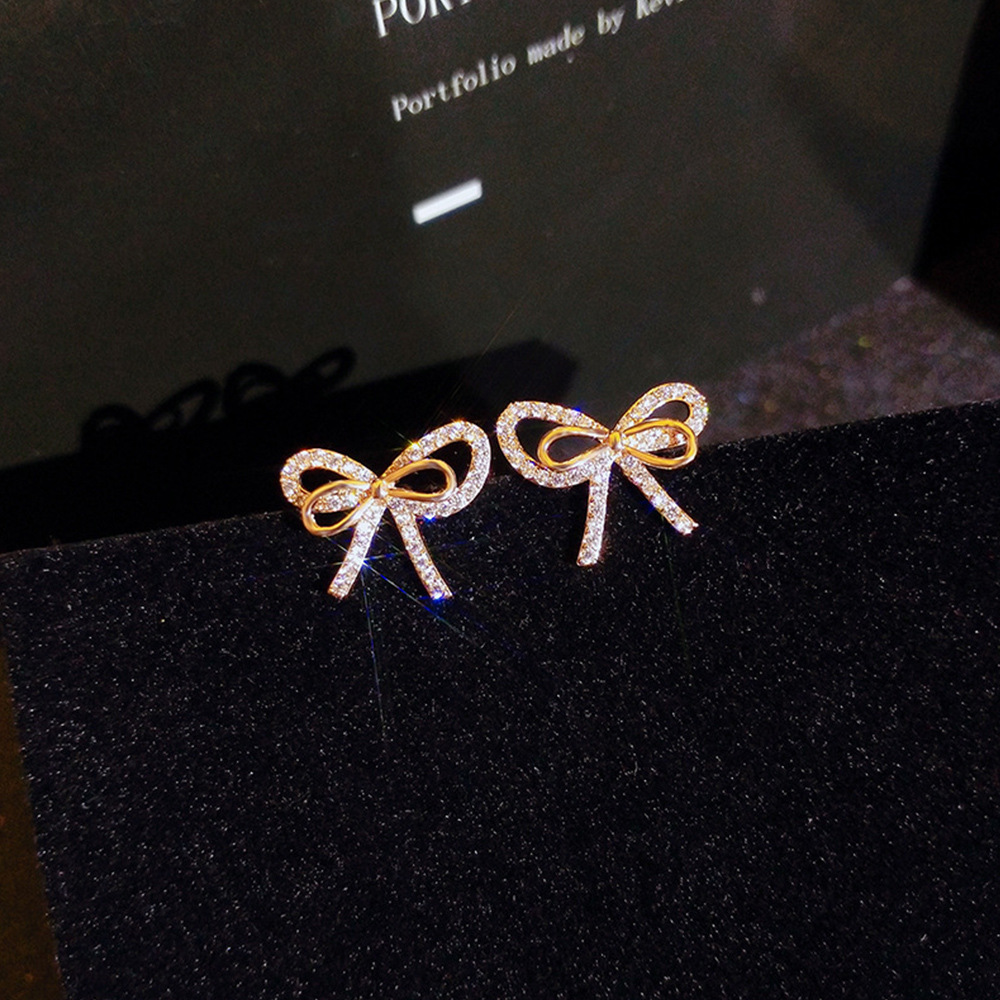 Elegant fairy bow earrings for women Korean temperament Internet celebrity diamond earrings light luxury girl heart earrings