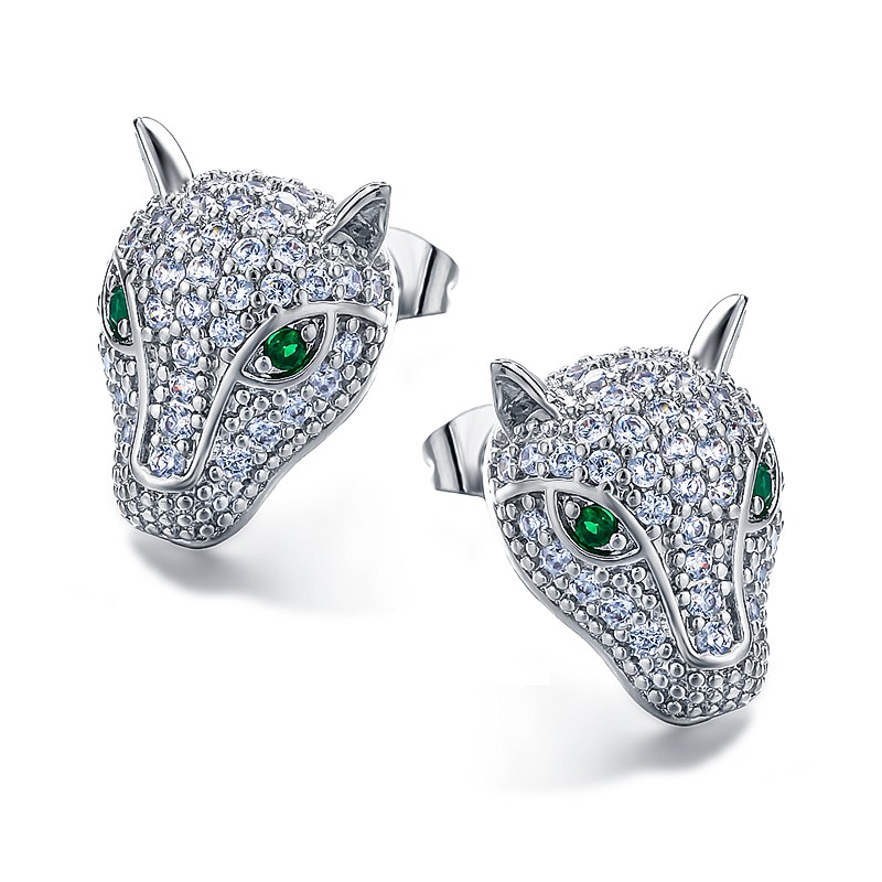 European and American cheetah shaped zircon earrings with wild charm, fashionable luxury style earrings