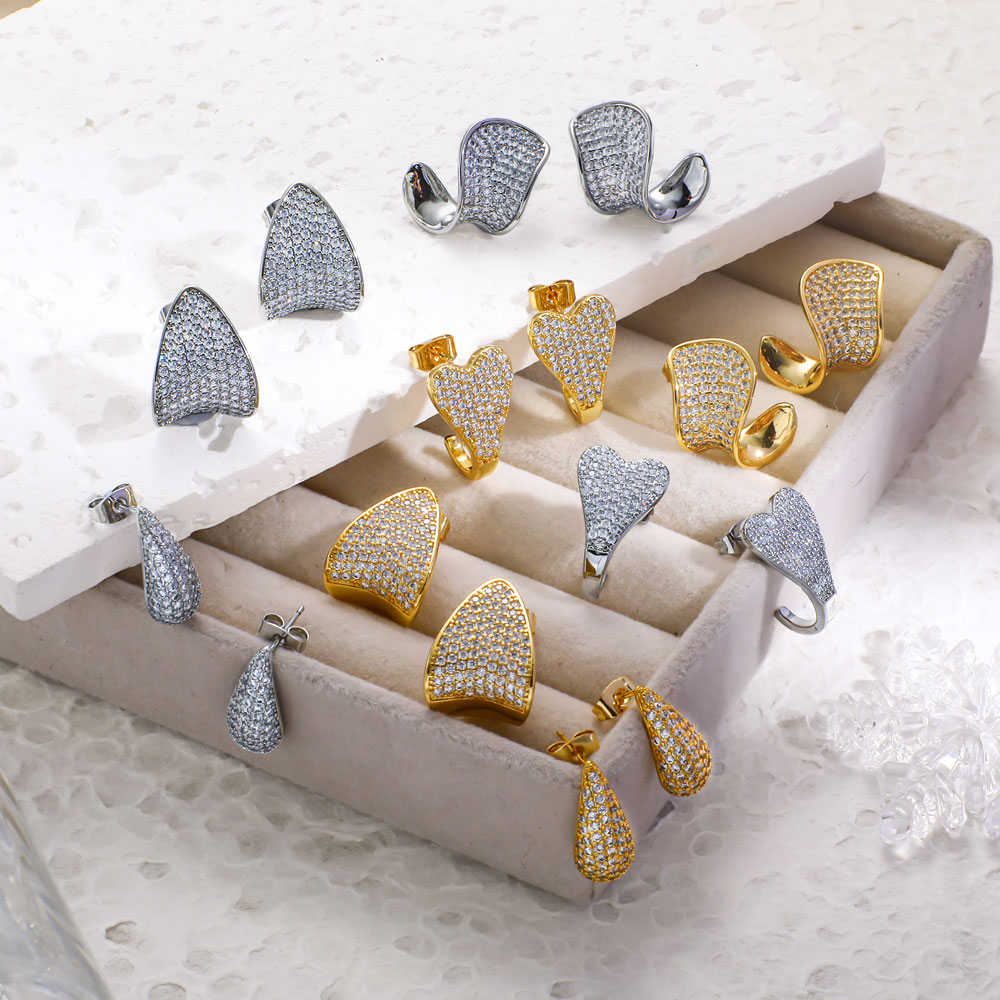 2024 hot-selling heavy-duty full-inlaid earrings, luxurious C-shaped temperament heart earrings, European and American fashion earrings
