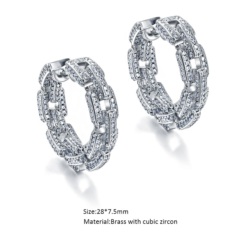 Iced Out CZ Huggie Hoop Earrings with Round Brilliant Cut Diamond Brass Copper Wedding Party Bridal Anniversary Gifts