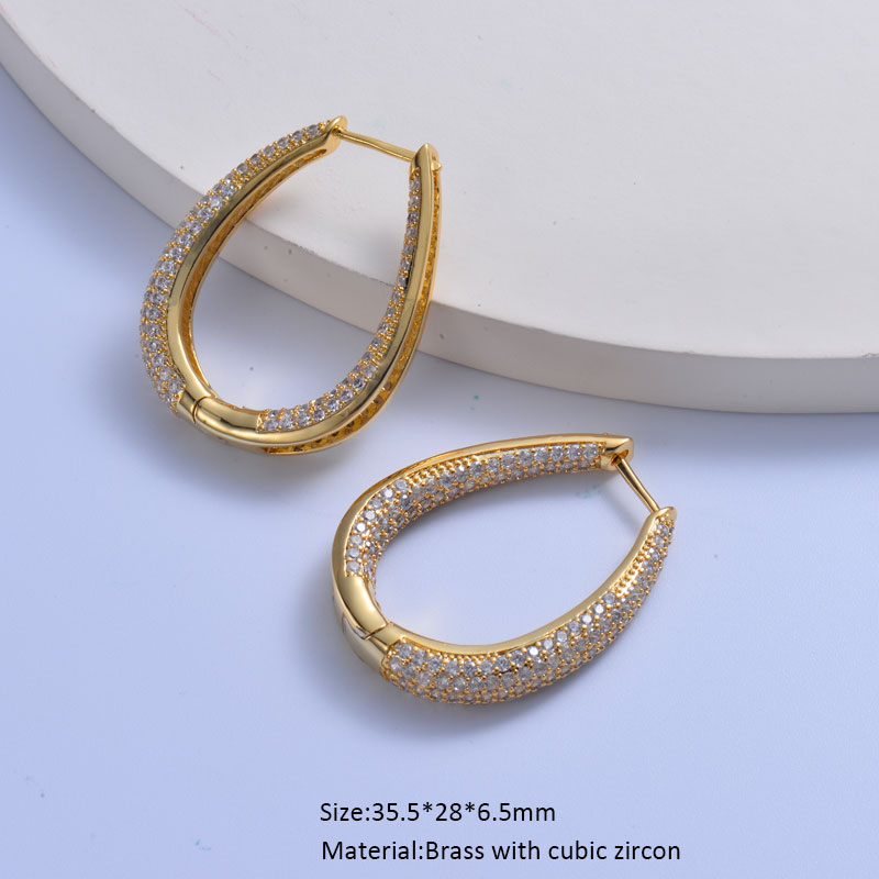 Korean elegant OL temperament earrings mix and match sparkling zircon micro-inlaid oval earrings factory direct sales