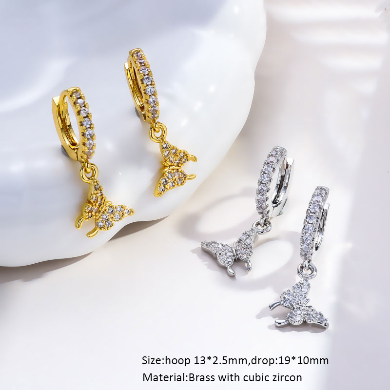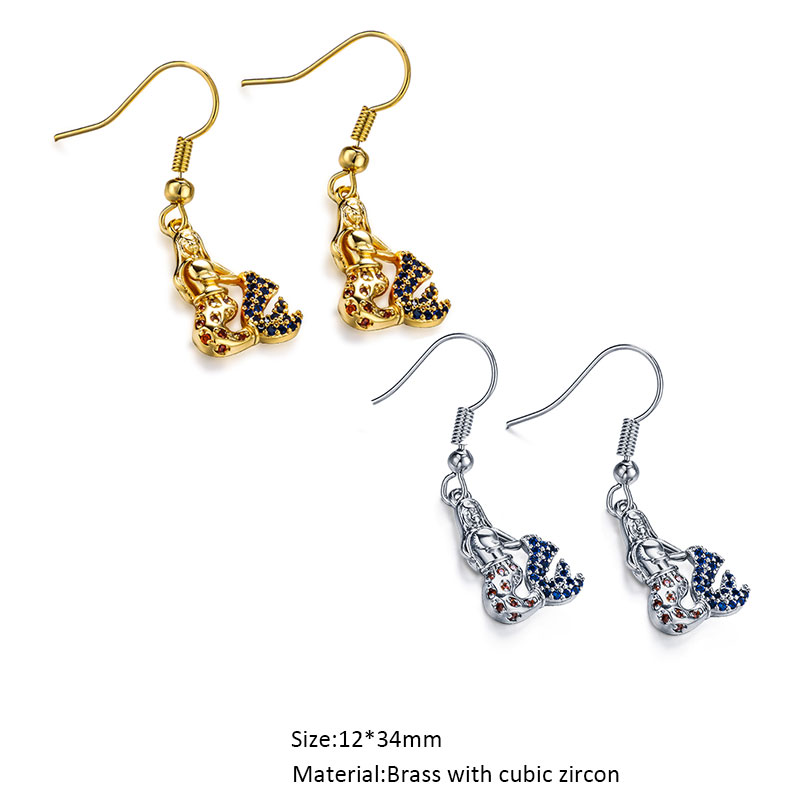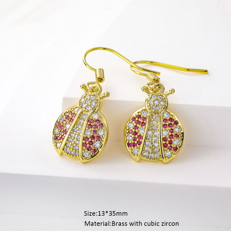 Ladybug Mushroom Butterfly Mermaid Drop Earrings Cubic Zircon 18K Gold Plated