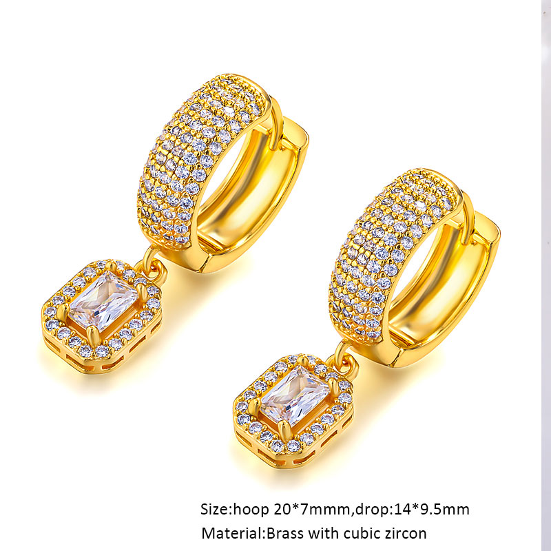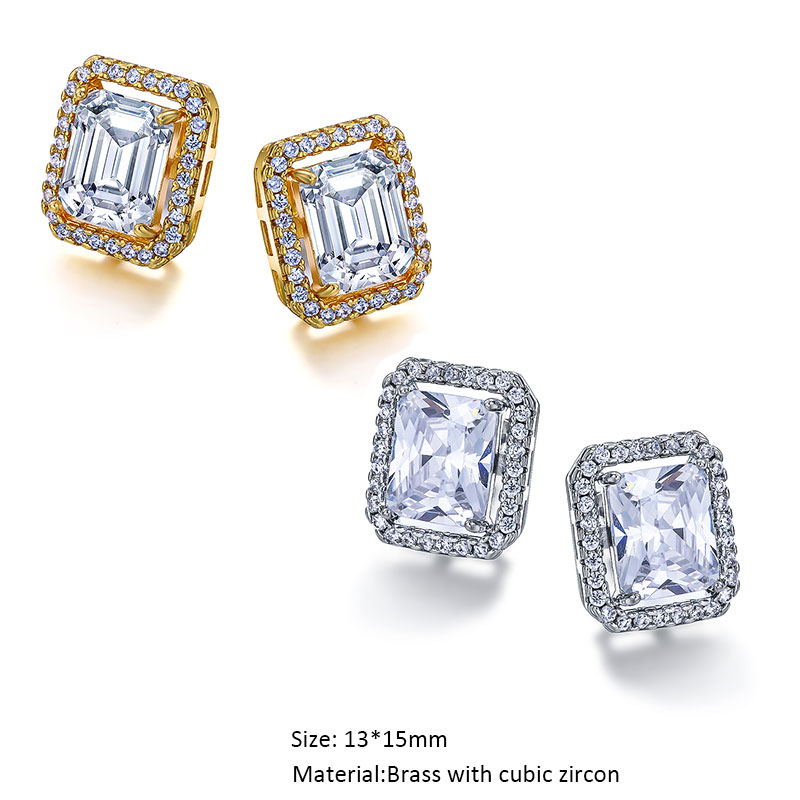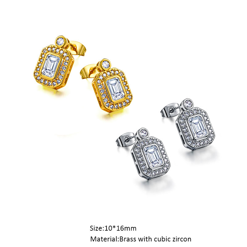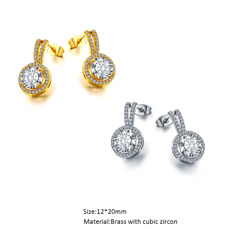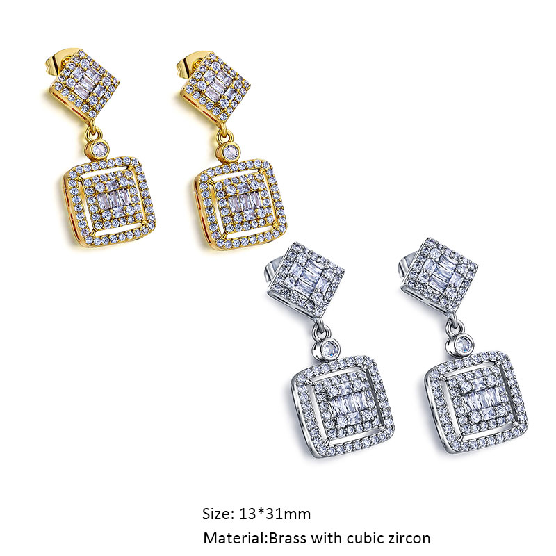 Cubic Zircon Diamond Bling Classic Solitarie Geometric Drop Stud Earrings for Women