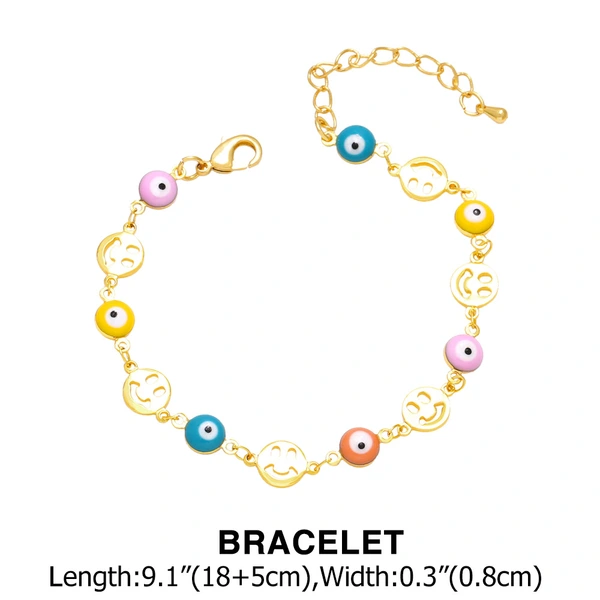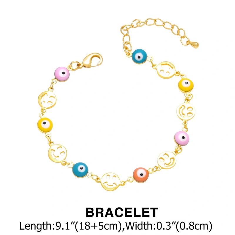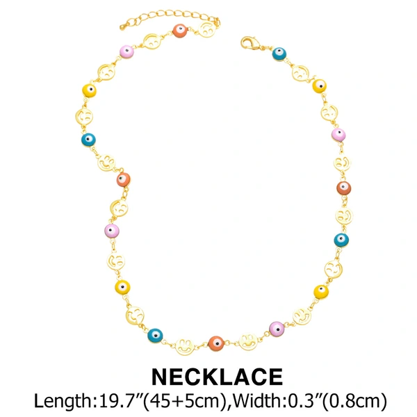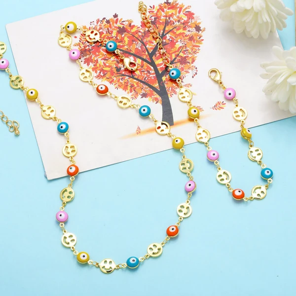 Accesorios europeos y americanos, collar y pulsera con diseño de gotas de aceite de colores y cara sonriente, joyería femenina nkb531