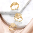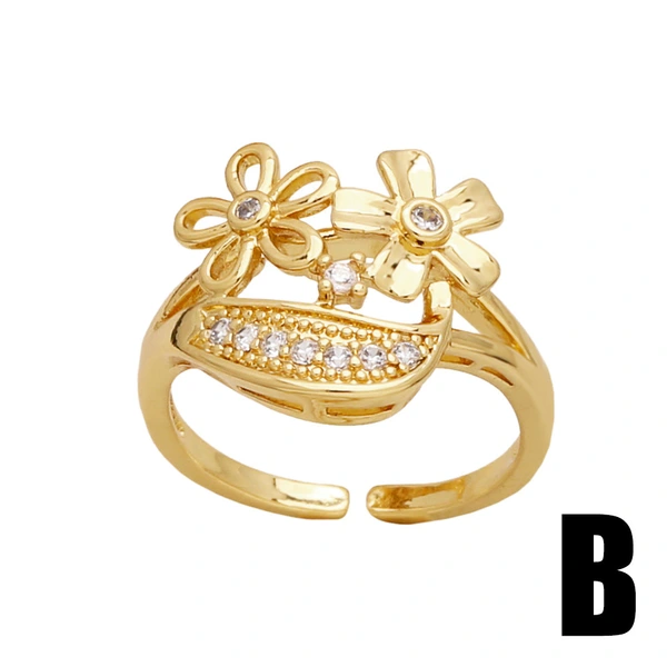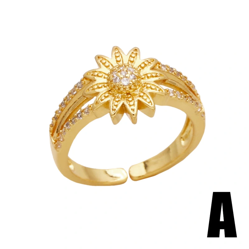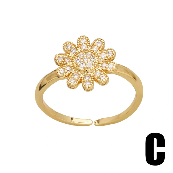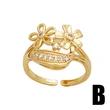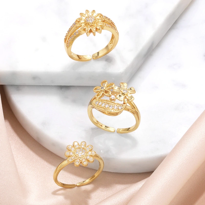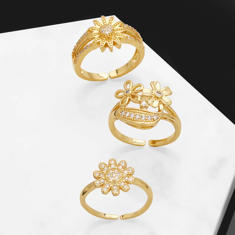 Anillo abierto chapado en oro con circonitas incrustadas de alta gama, en liquidación, con diseño de flores, RIS24.