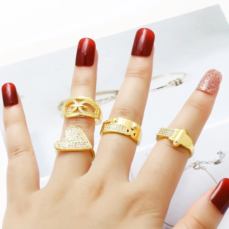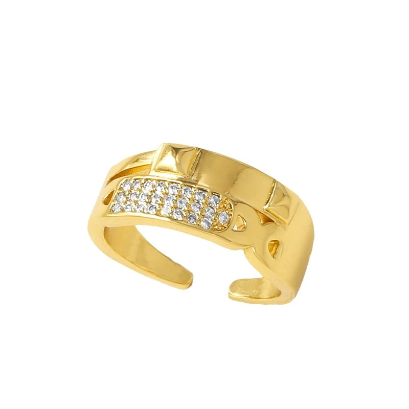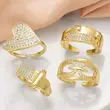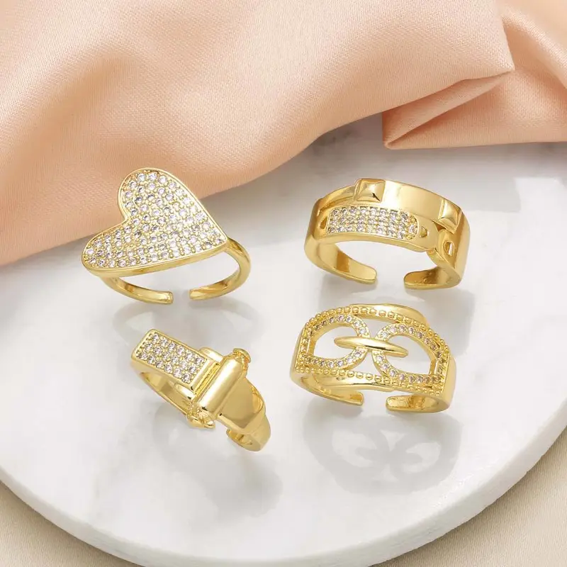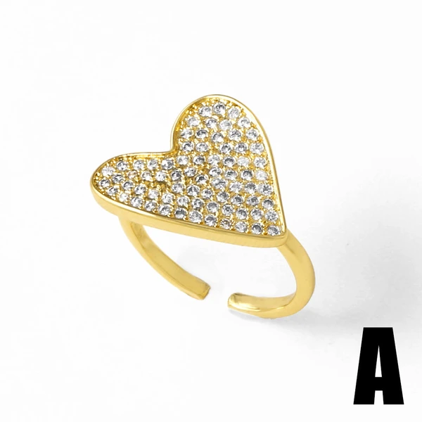 Anillo abierto con circonitas cúbicas chapadas en oro y forma irregular con forma de corazón de amor como joya rih67