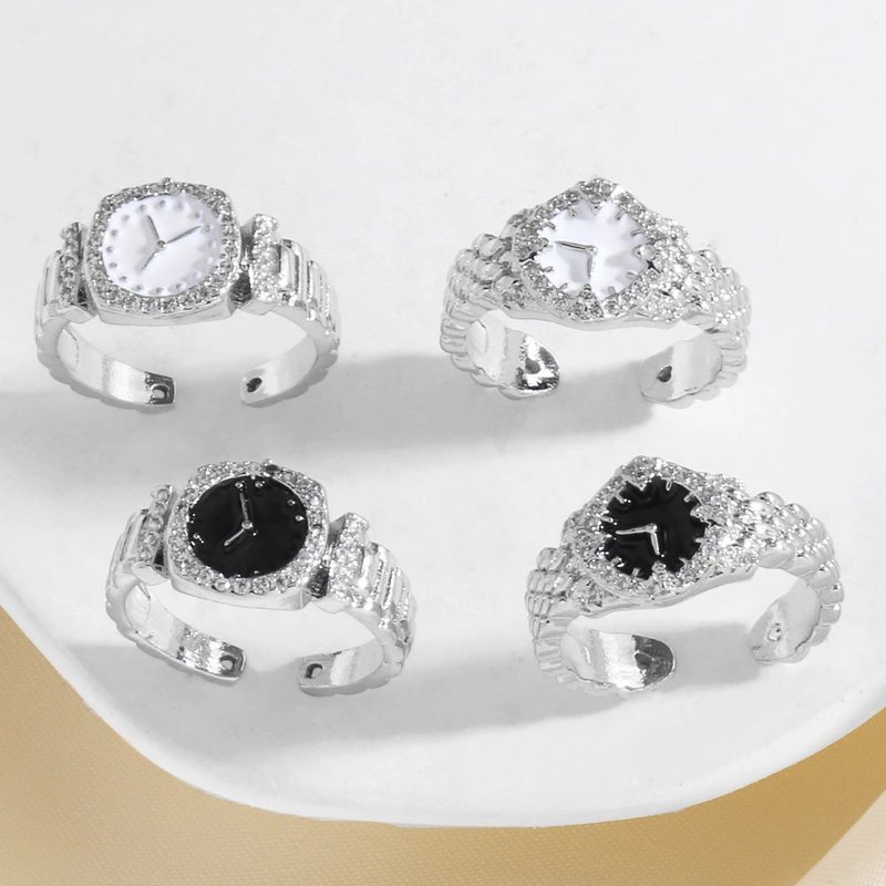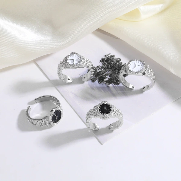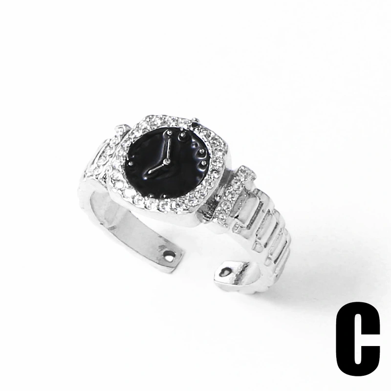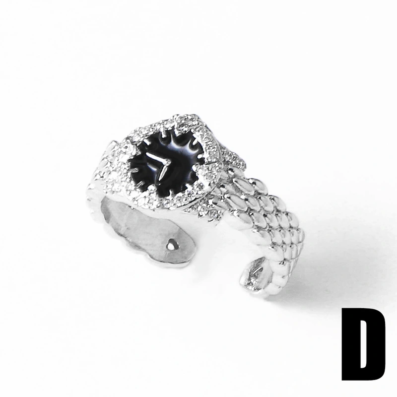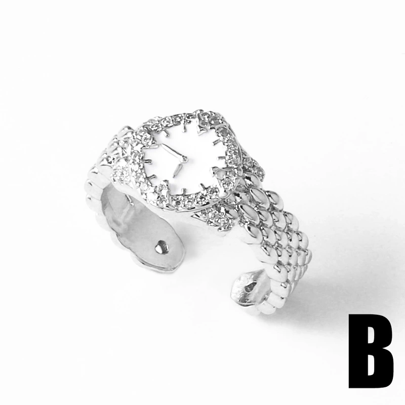 Anillo abierto con forma de gota de aceite de circón, estilo moderno, riq43