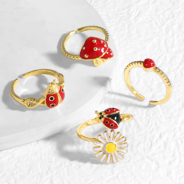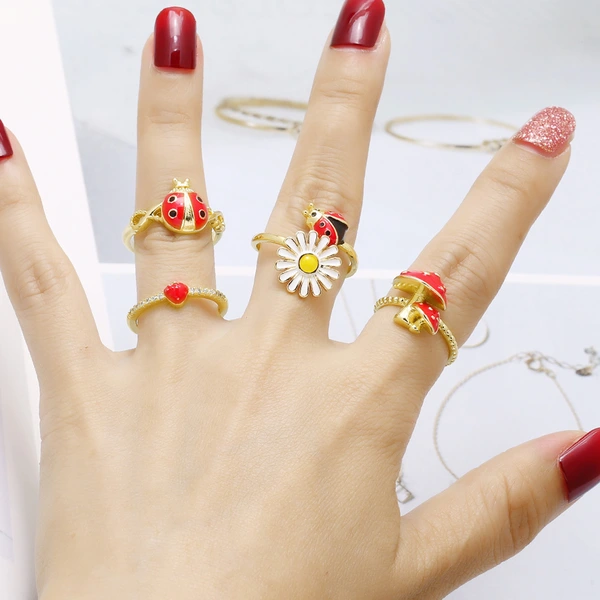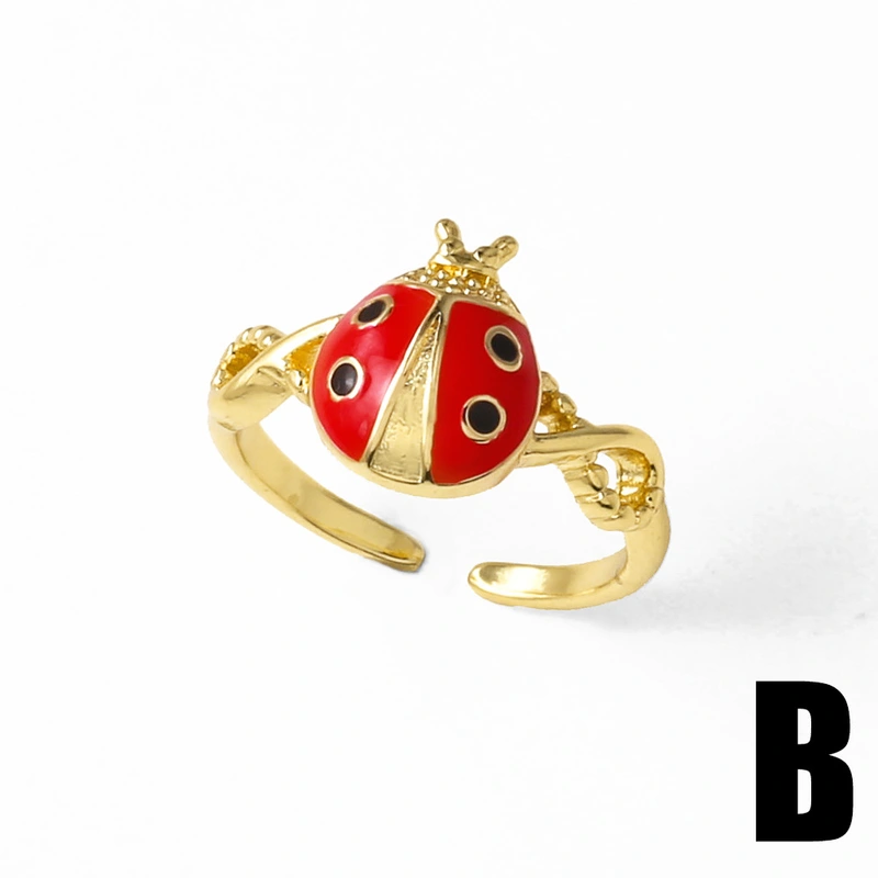 Anillo abierto con forma de insecto, chapado en cobre y oro de 18 quilates, con goteo de aceite, joyería rin88