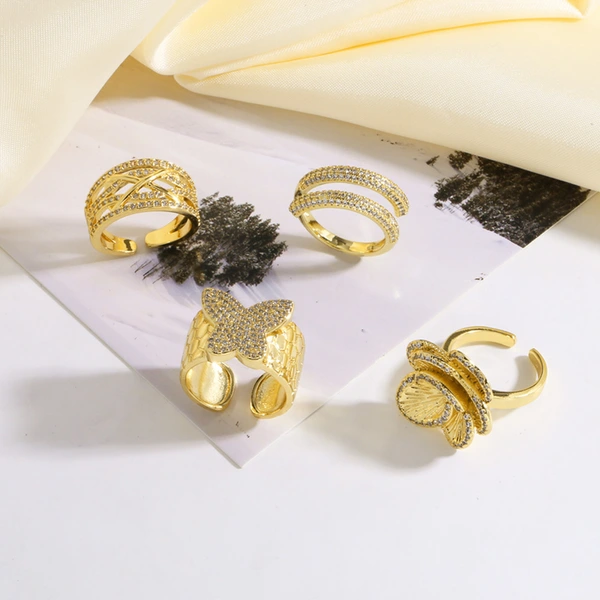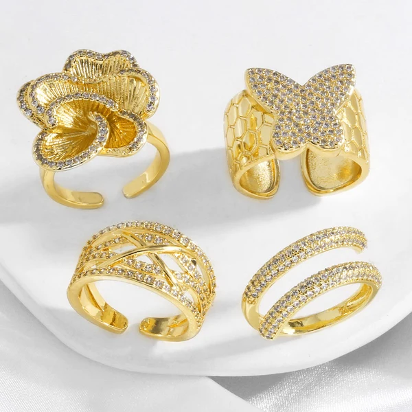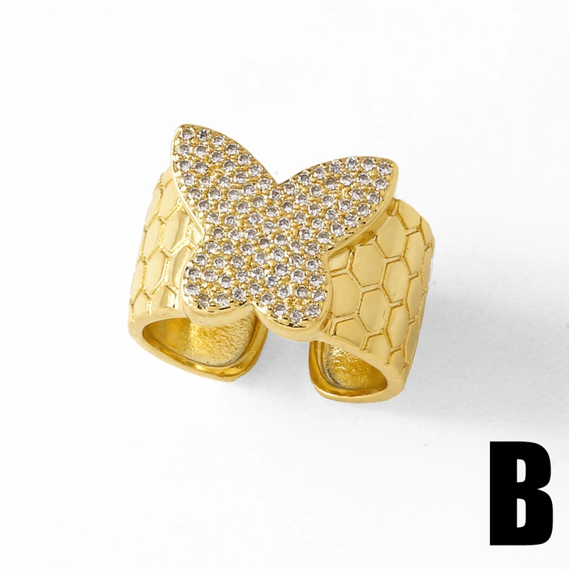 Anillo abierto con forma de mariposa y circonita dorada, ideal como joya, para mujer, rin77