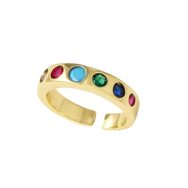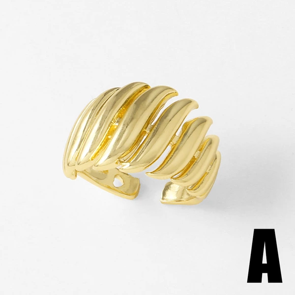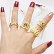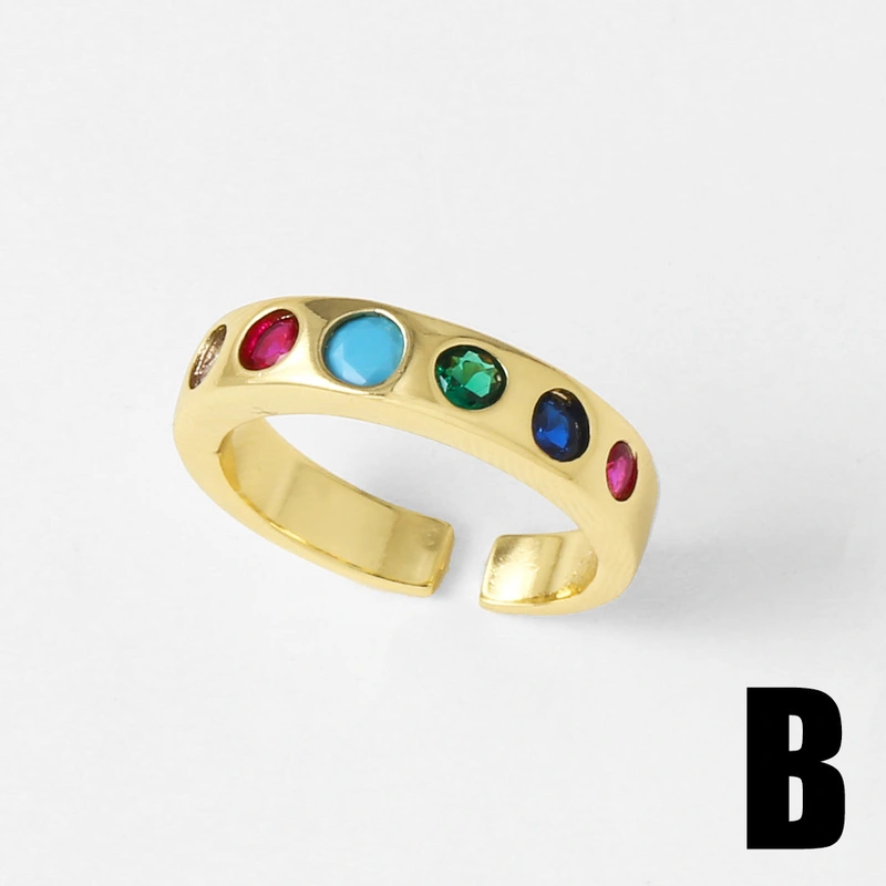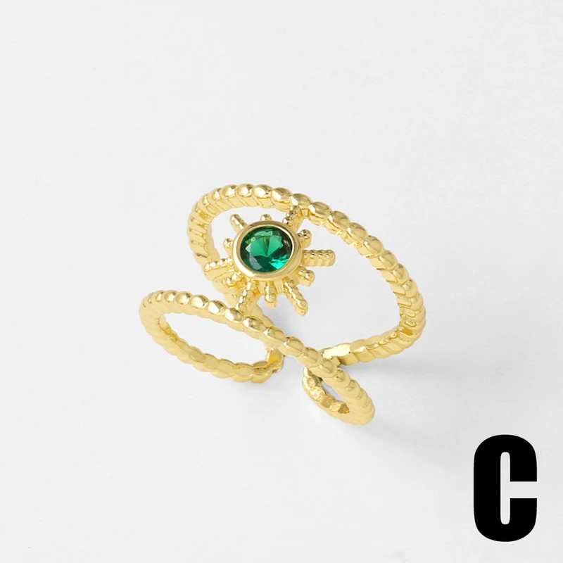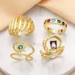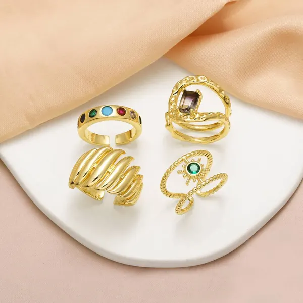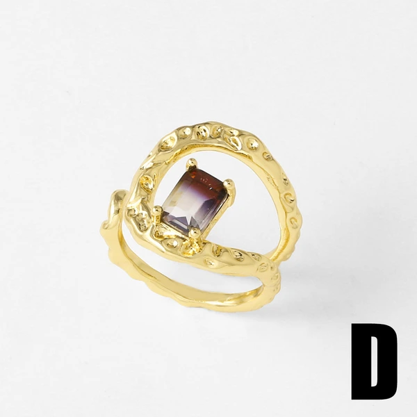 Anillo abierto con gemas de color oro de 18 quilates chapado en cobre irregular para mujer, muy popular como joyería, rik62