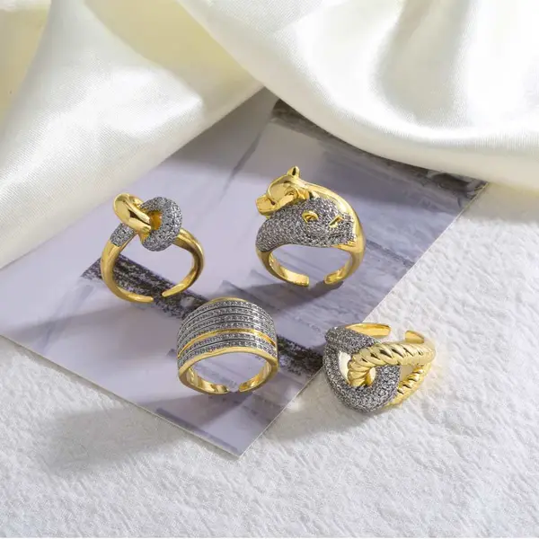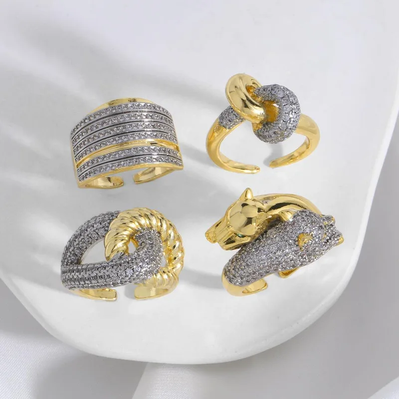 Anillo abierto cruzado bicolor con cabeza de leopardo, chapado en cobre, oro de 18 quilates, para mujer, muy popular en Europa y América, RIS89