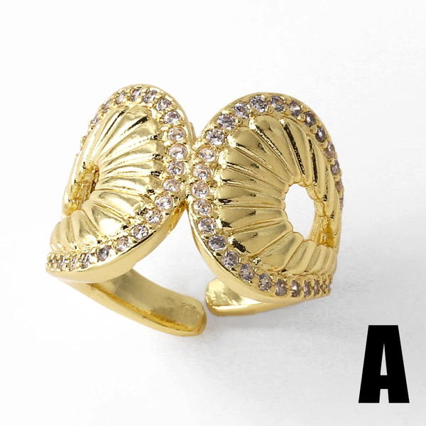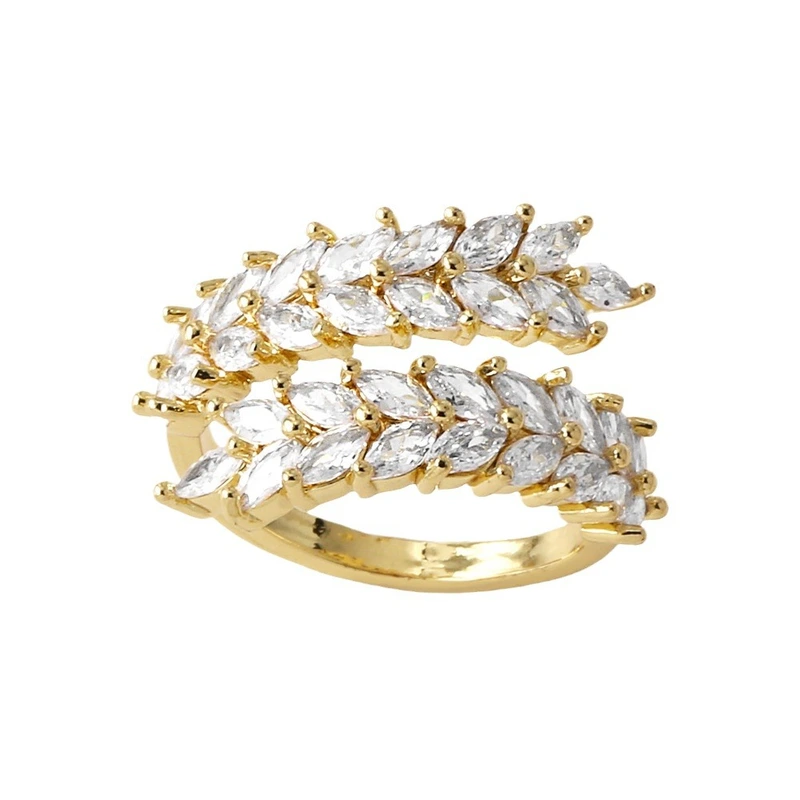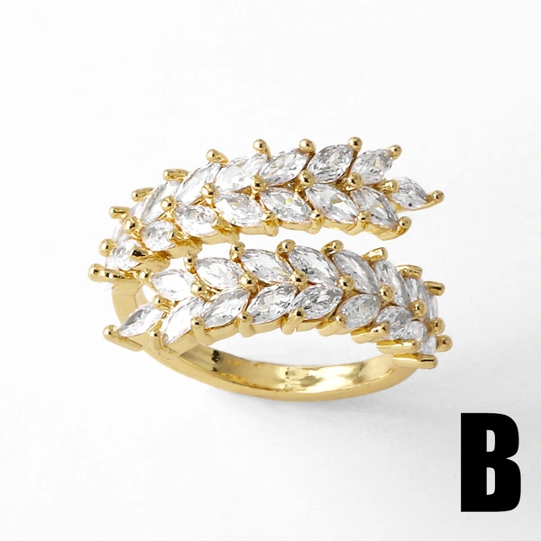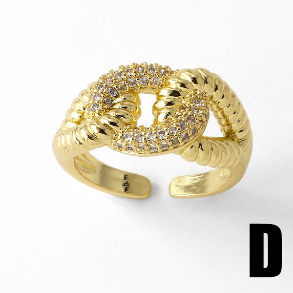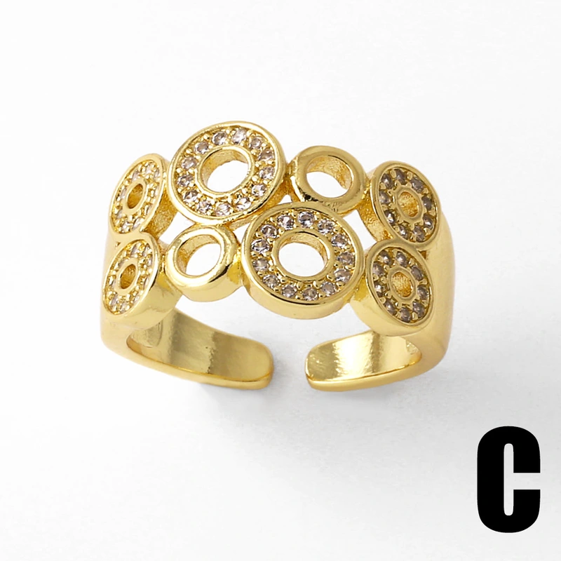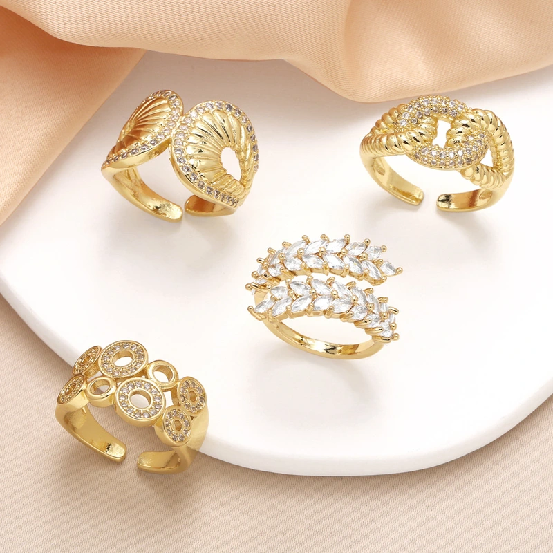 Anillo abierto de circonita con incrustaciones de oro real chapado en cobre para mujer, de forma irregular, rij52