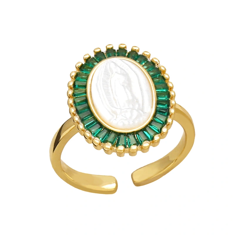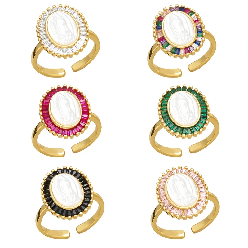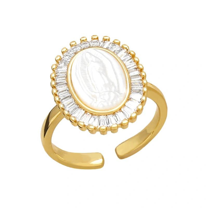 Anillo abierto de la Virgen María, estilo retro, ovalado, para mujer, rim53