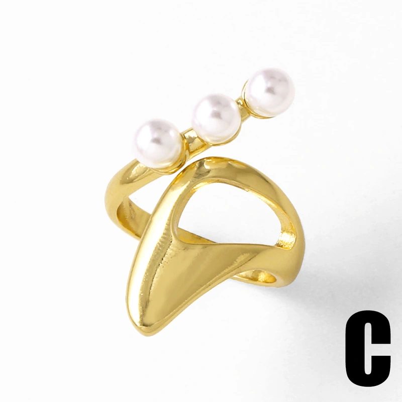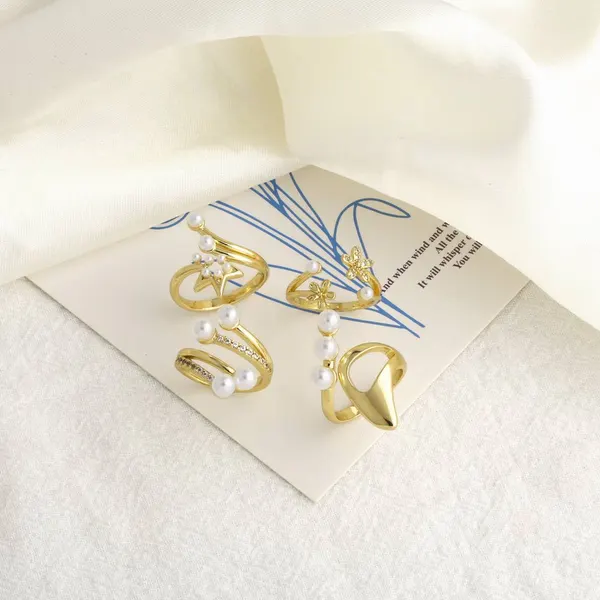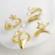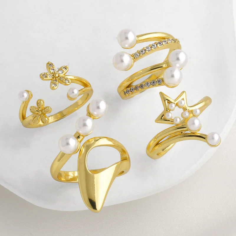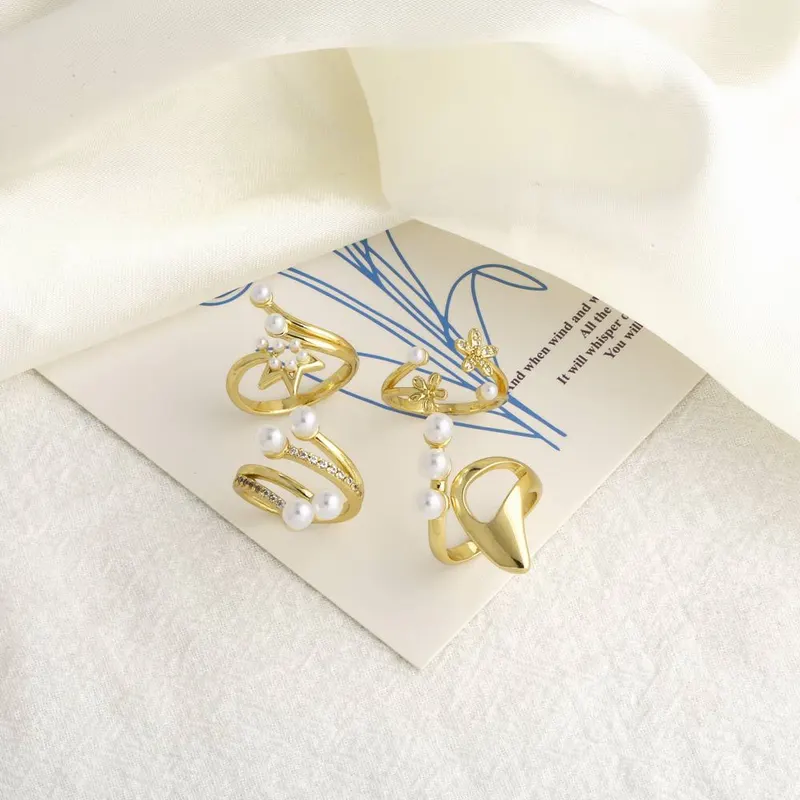 Anillo abierto de perla para mujer, chapado en cobre, oro de 18 quilates, con forma de flor y estrella, ajustable, ris37