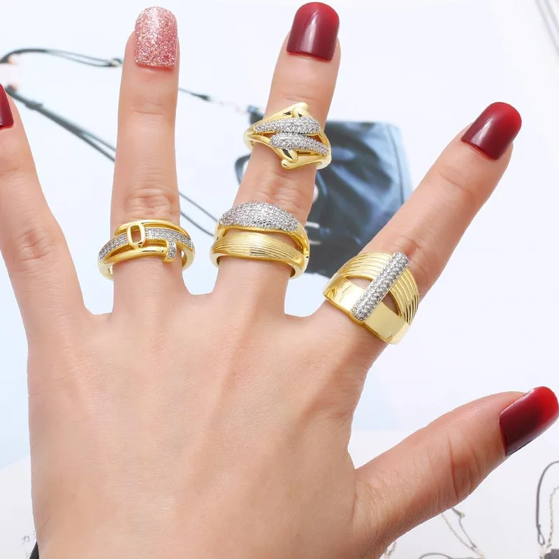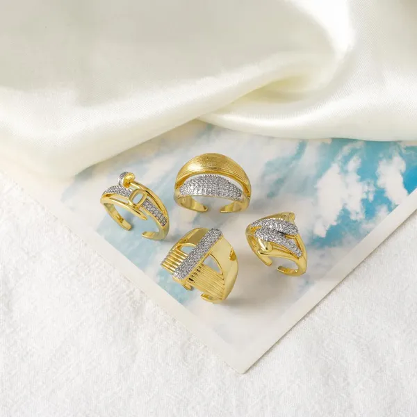 Anillo abierto irregular bicolor chapado en cobre de oro de 18 quilates, muy vendido como joyería, ris36 para mujer.