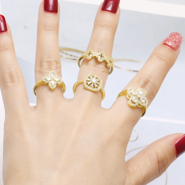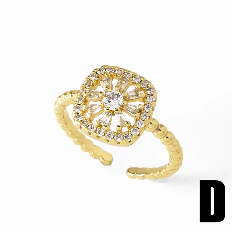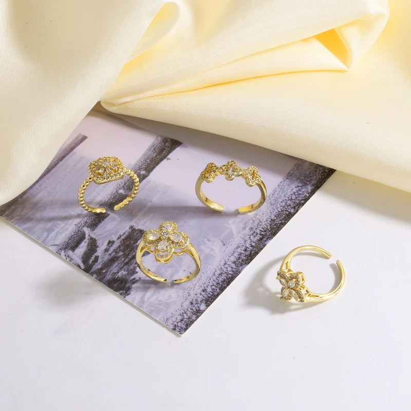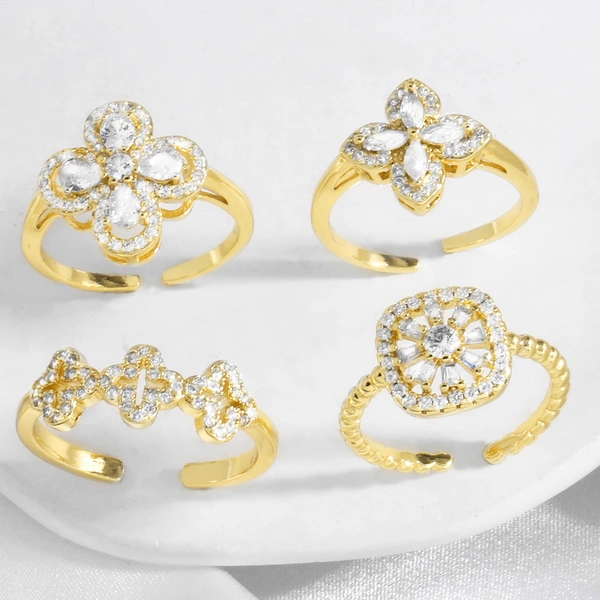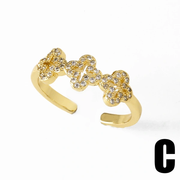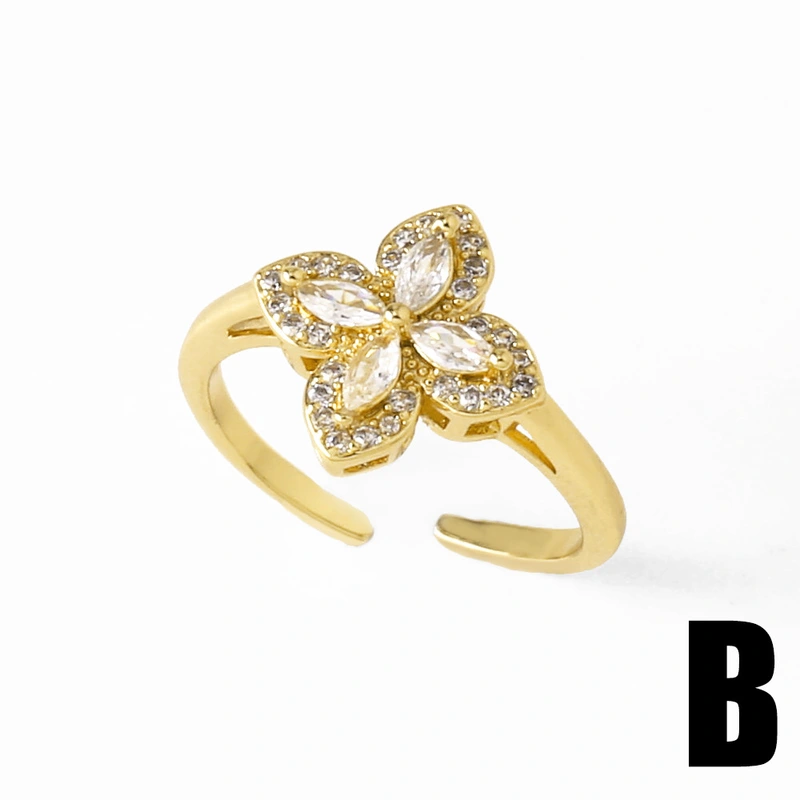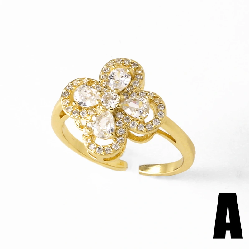 Anillo ajustable con incrustaciones de trébol de cuatro hojas y circonitas, chapado en oro de 18 quilates, estilo europeo y americano, para mujer, ris59