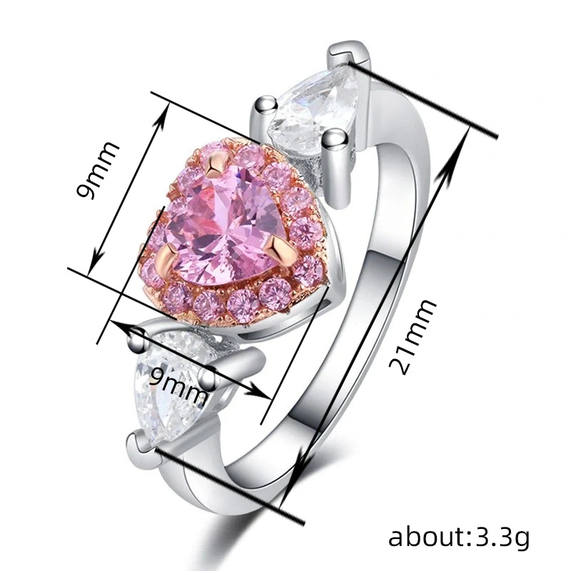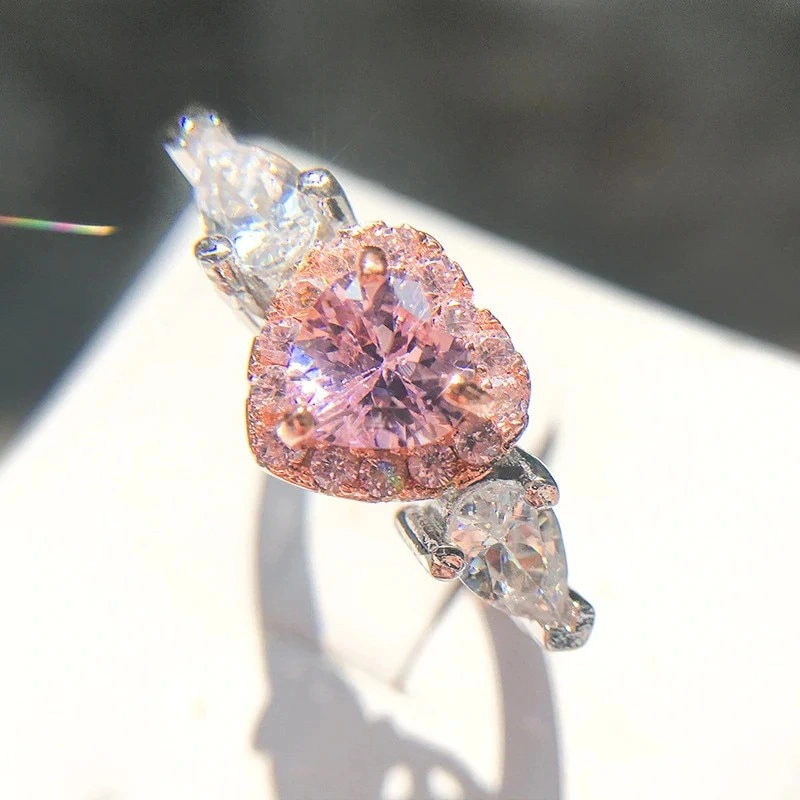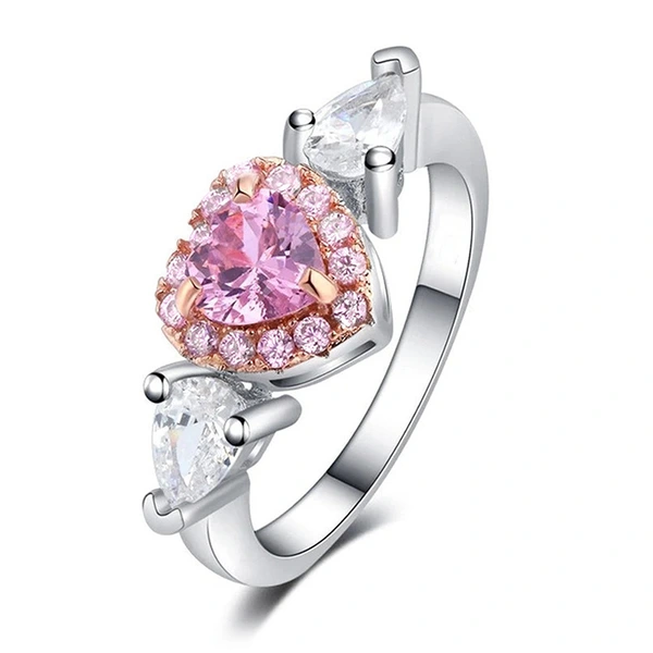 Anillo bicolor en forma de corazón de gran venta, joyería de mano rosa, anillo de alta gama en forma de lágrima