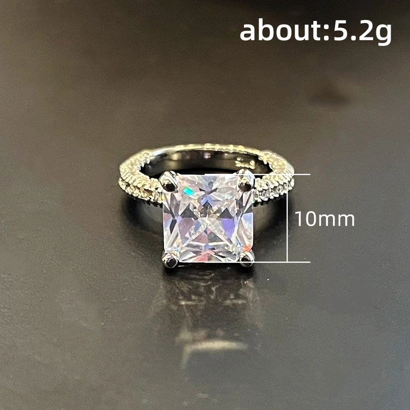 Anillo cuadrado de princesa de gran venta, nuevo, estilo europeo y americano, con incrustaciones de circonita, joyería para mujer, anillo de compromiso y propuesta.