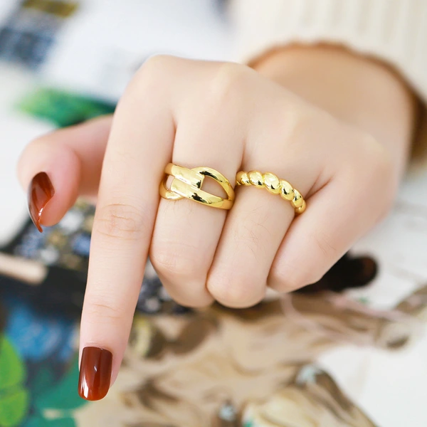 Anillo cruzado de joyería popular europea y americana en liquidación, diseño de nicho femenino, anillo abierto de cuerno, borde 63